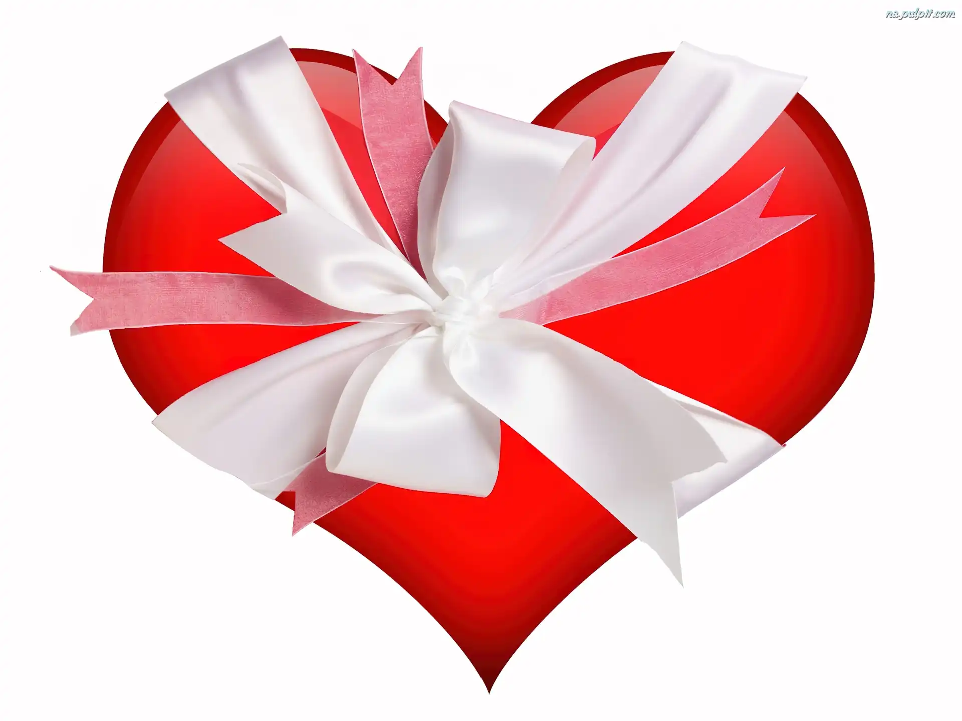 Wstążka, Serce, Czerwone, Biała Na Pulpit