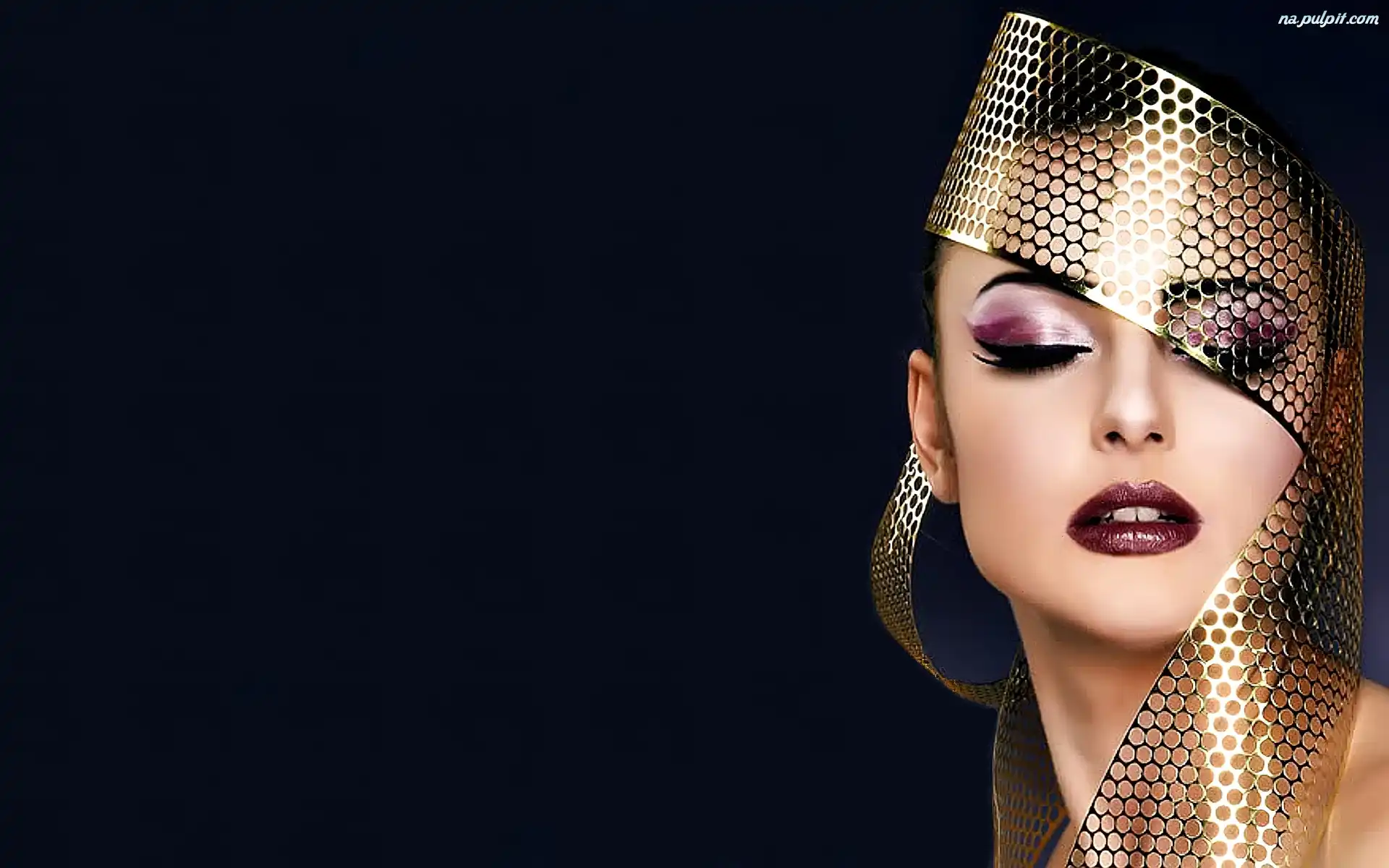 Wstążka, Makijaż, Kobieta, Złota Na Pulpit