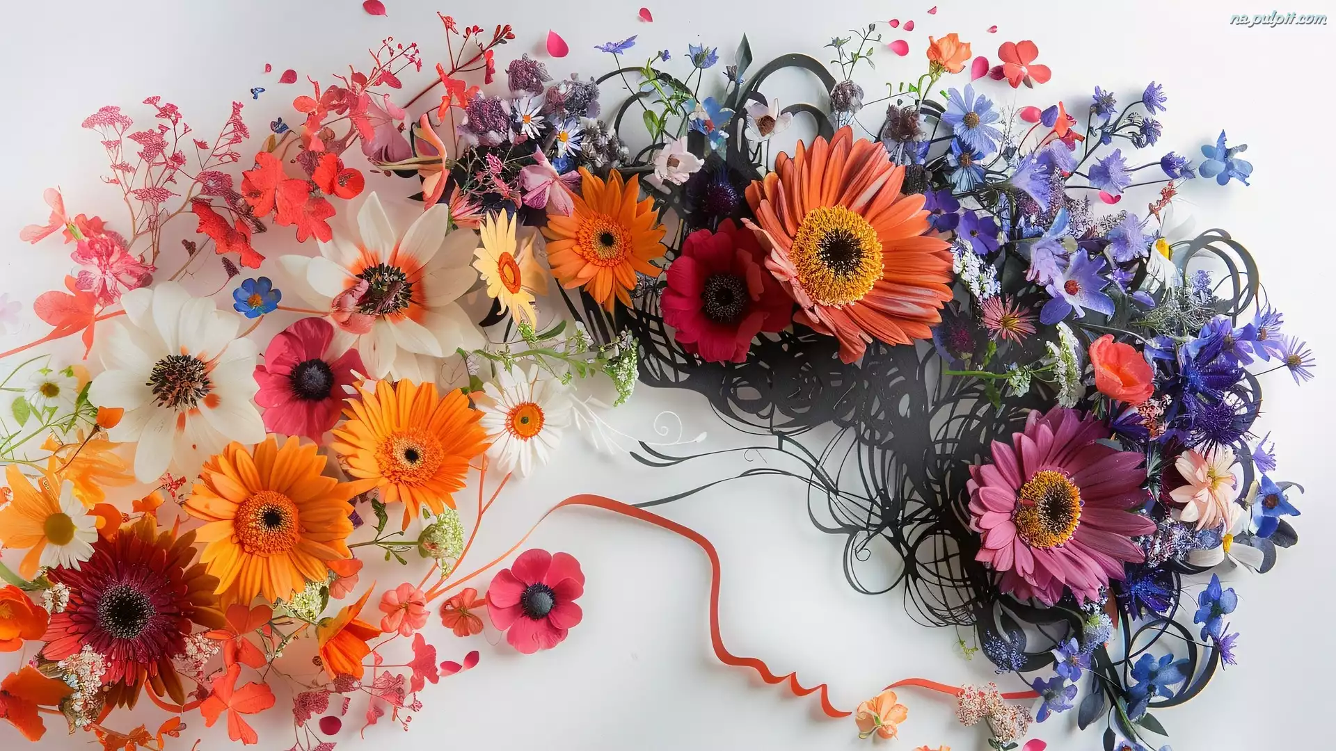 Kolorowe, Kwiaty, Gerbery, Wstążka