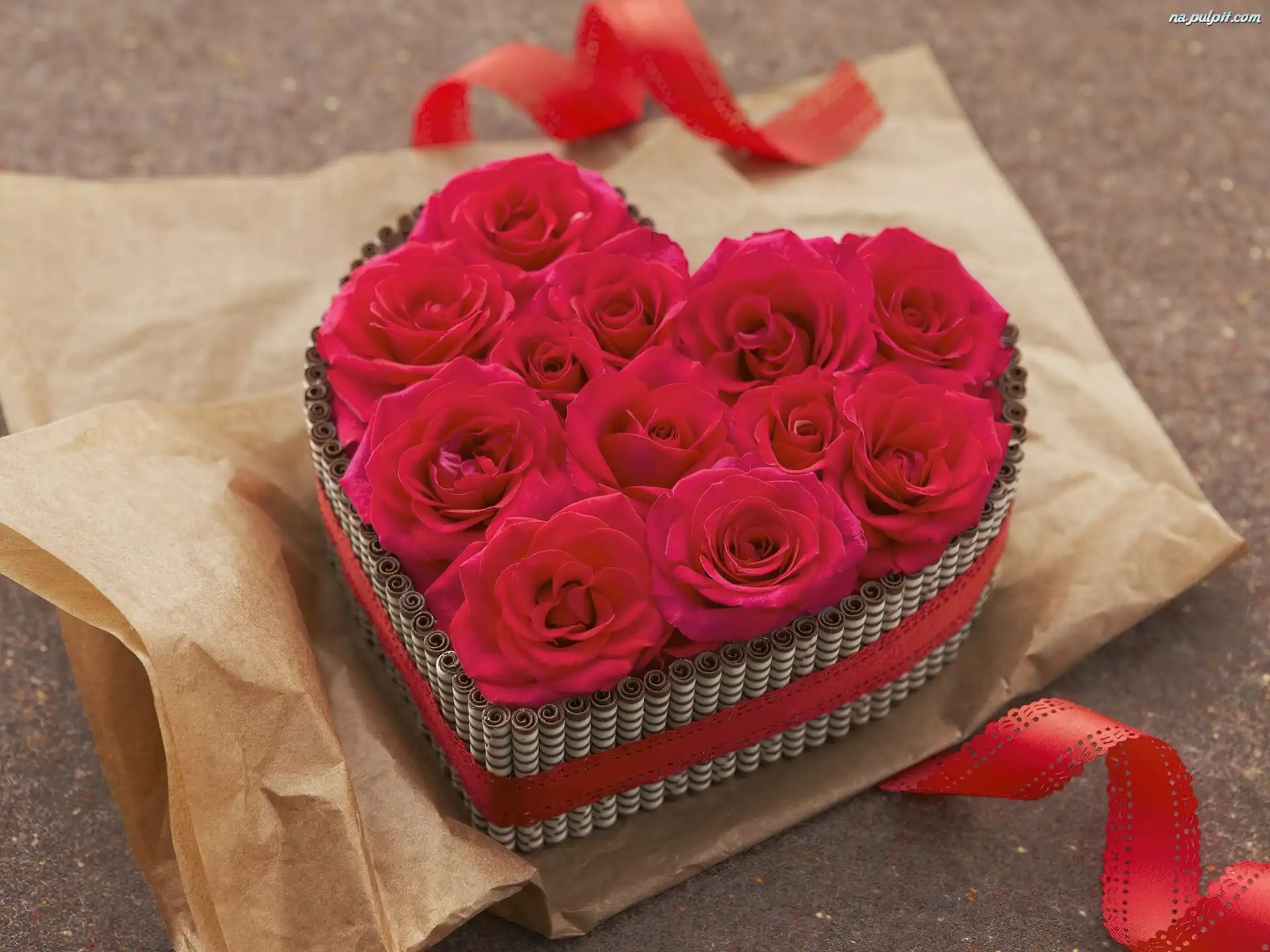 Wstążka, Róże, Czerwone, Serce, Opakowanie Na Pulpit