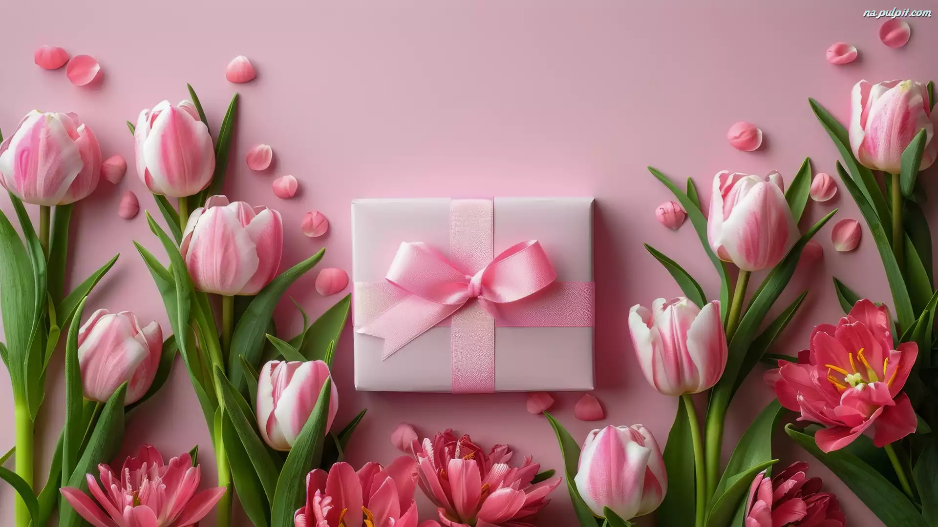 Wstążka, Prezent, Tulipany Na Pulpit