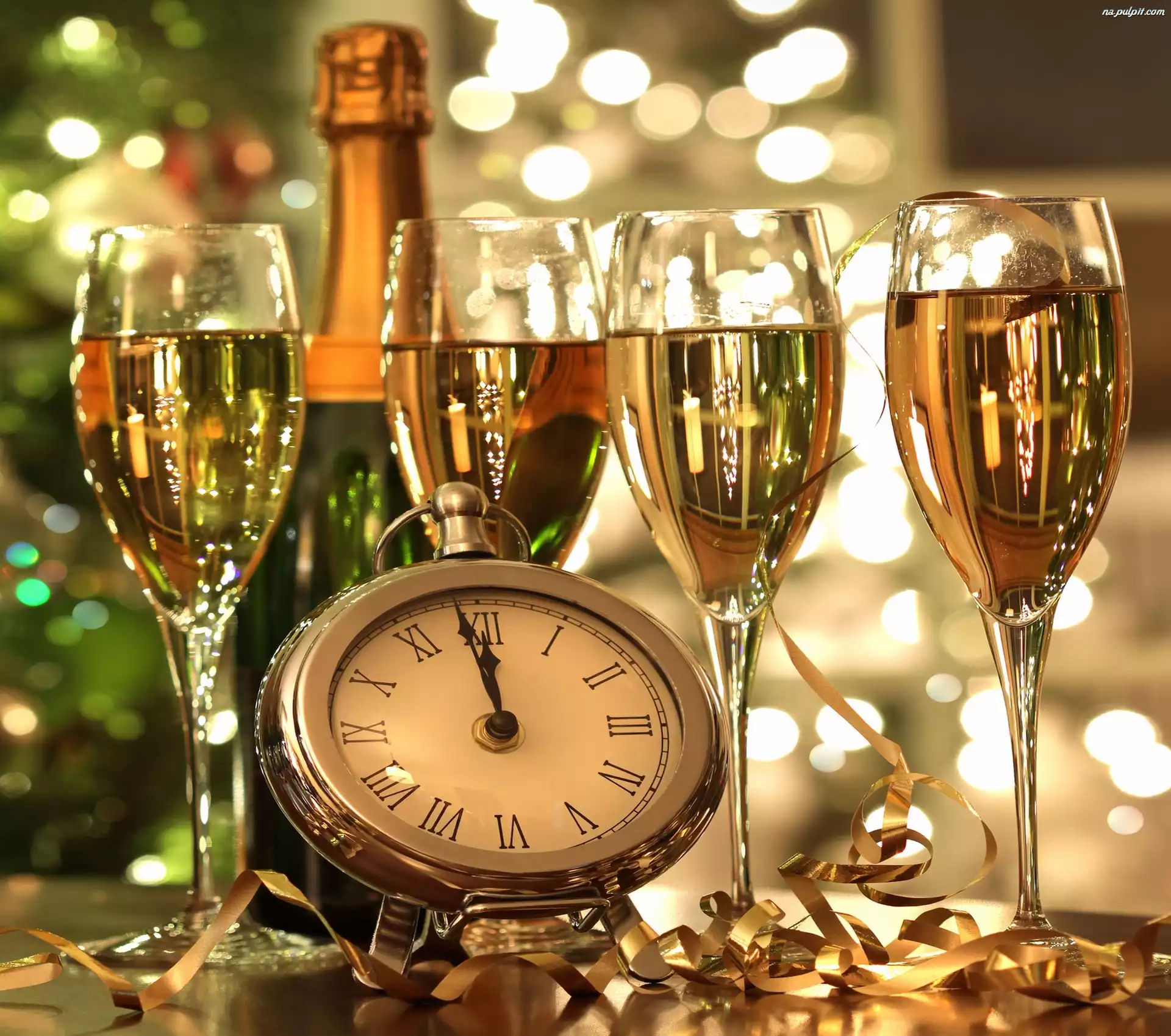 Wstążka, Szampan, Zegar, Lampki Na Pulpit