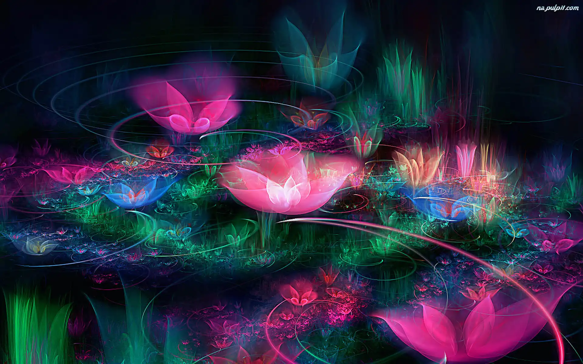 Wstęgi, Różowe, Zielone, Niebieskie, Kwiaty Na Pulpit