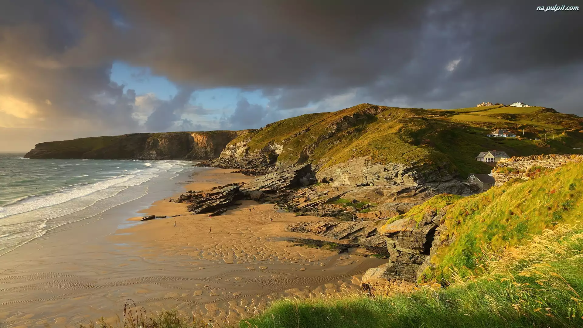 Wybrzeże, Wzgórza, Chmury, Skały Na Pulpit