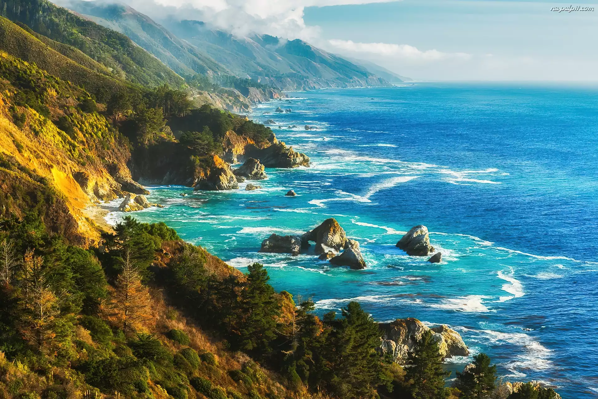 Wybrzeże, Zalesione, Morze, Góry Na Pulpit