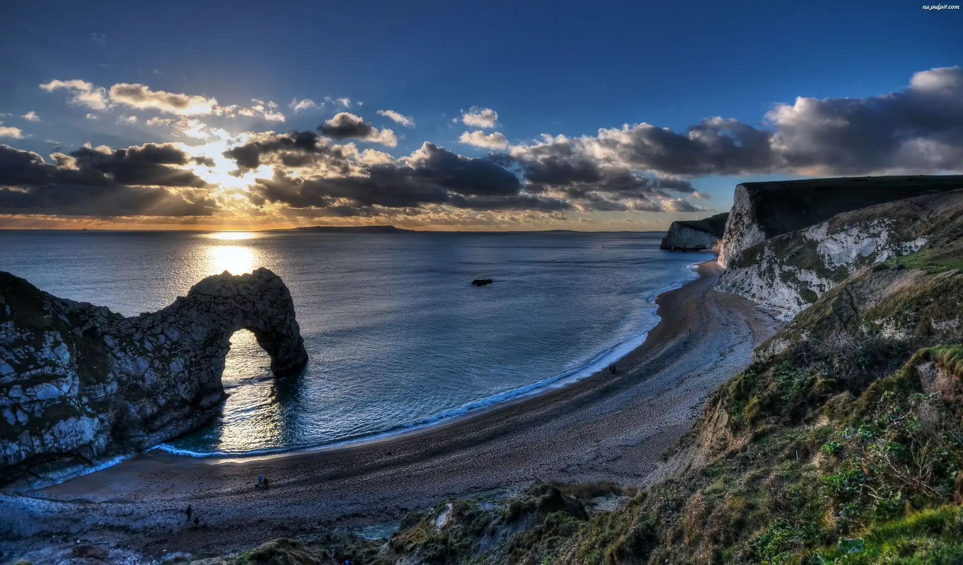 Wybrzeże, Morze, Wschód Słońca, Skały