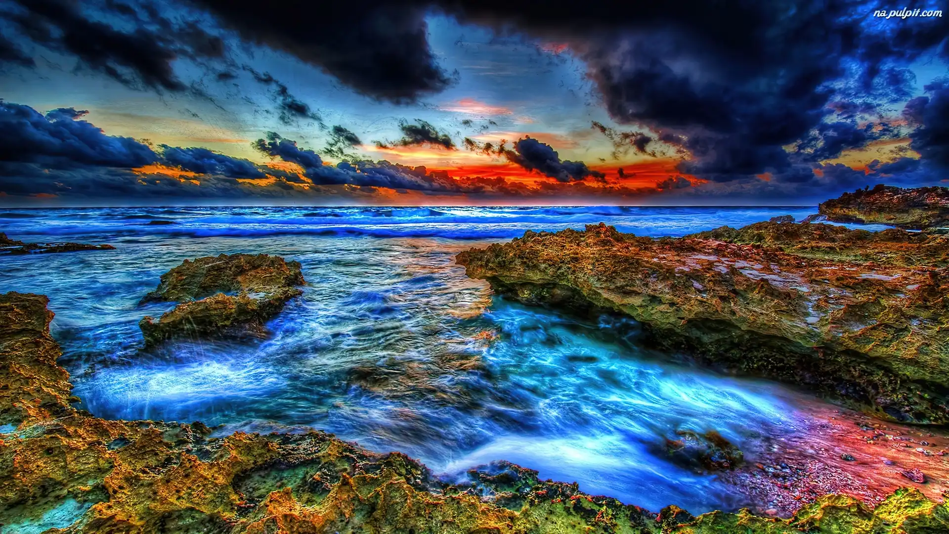 Wybrzeże, Ocean, Niebo, Zachmurzone, Skaliste Na Pulpit