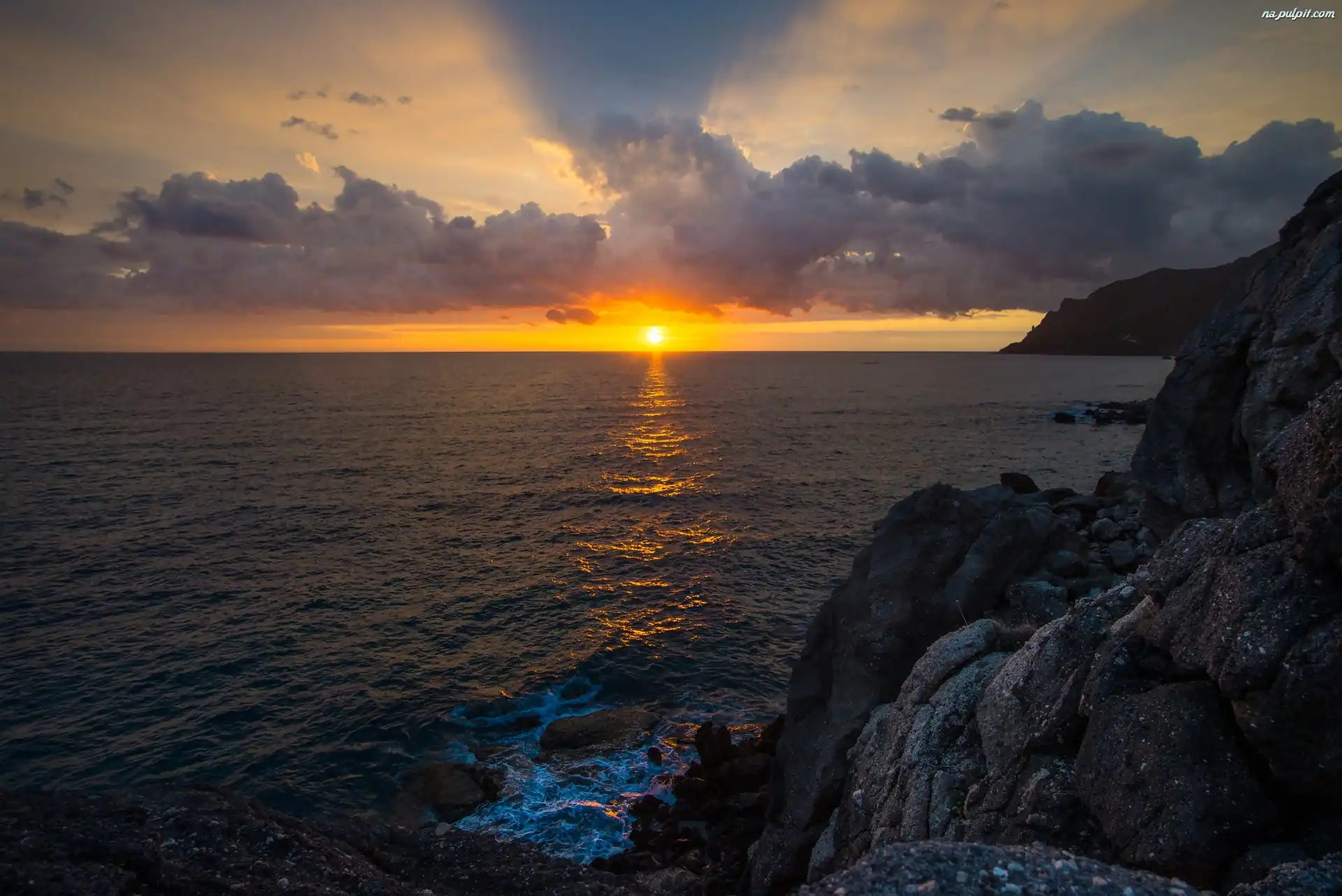 Wybrzeże, Skały, Morze, Zachód Słońca Na Pulpit