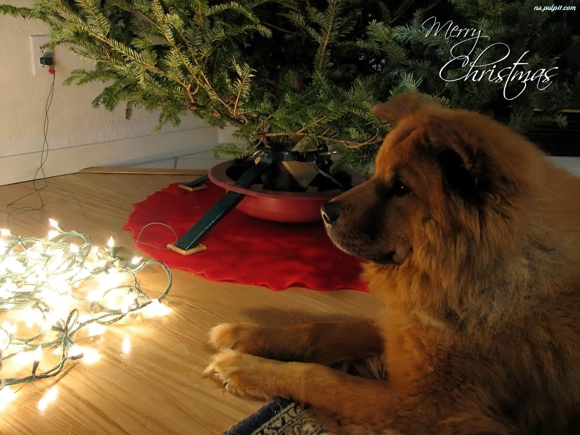Wyczekiwanie, Lampki, Pies, Choinka Na Pulpit