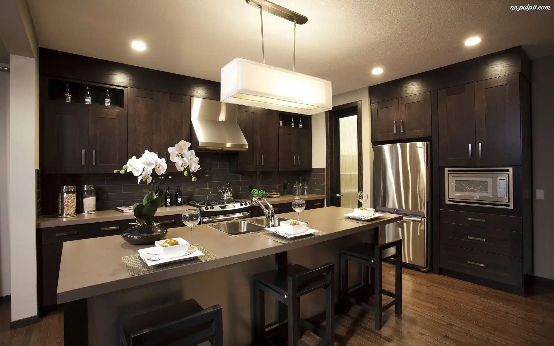 Wyspa kuchenna, Brązowe, Kuchnia, Szafki Na Pulpit