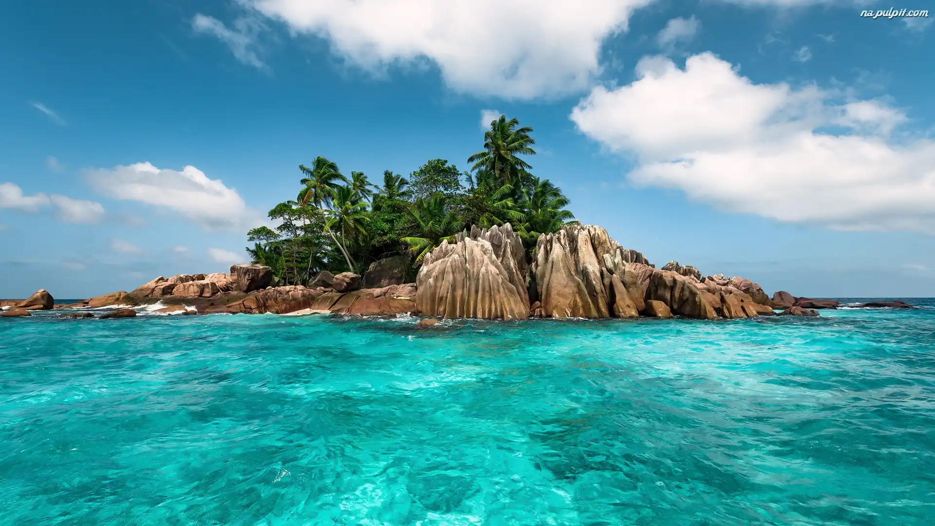 Wyspa, Tropiki, Chmury, Skały, Morze, Palmy Na Pulpit