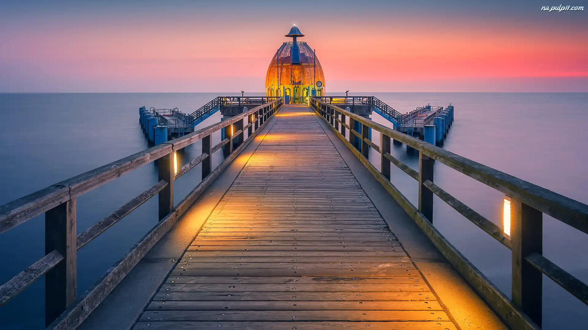Niemcy, Molo, Wyspa Rugia, Morze Bałtyckie, Wschód słońca, Dzwon nurkowy, Sellin Na Pulpit