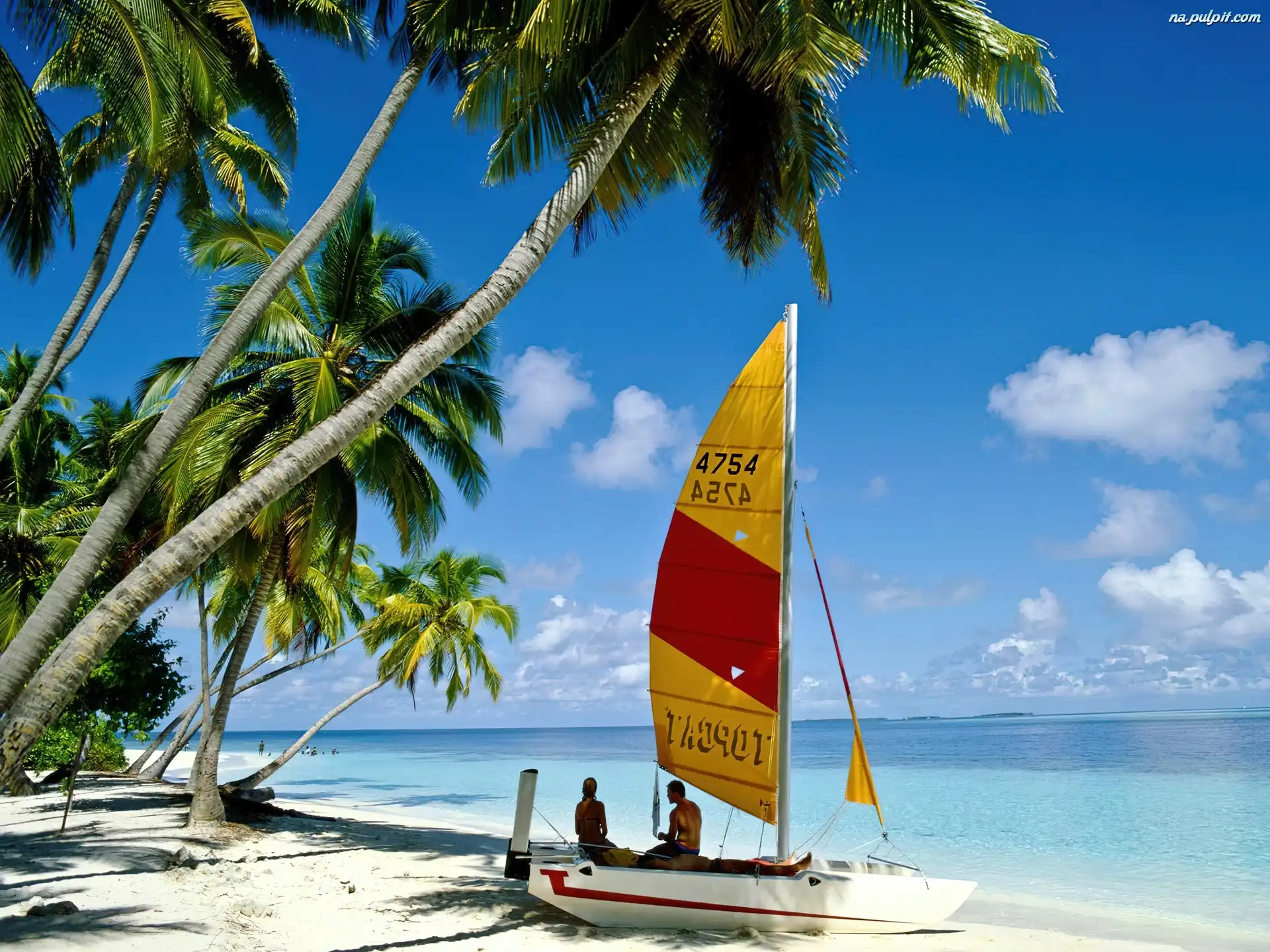 Żaglówka, Palmy, Wyspa, Plaża Na Pulpit