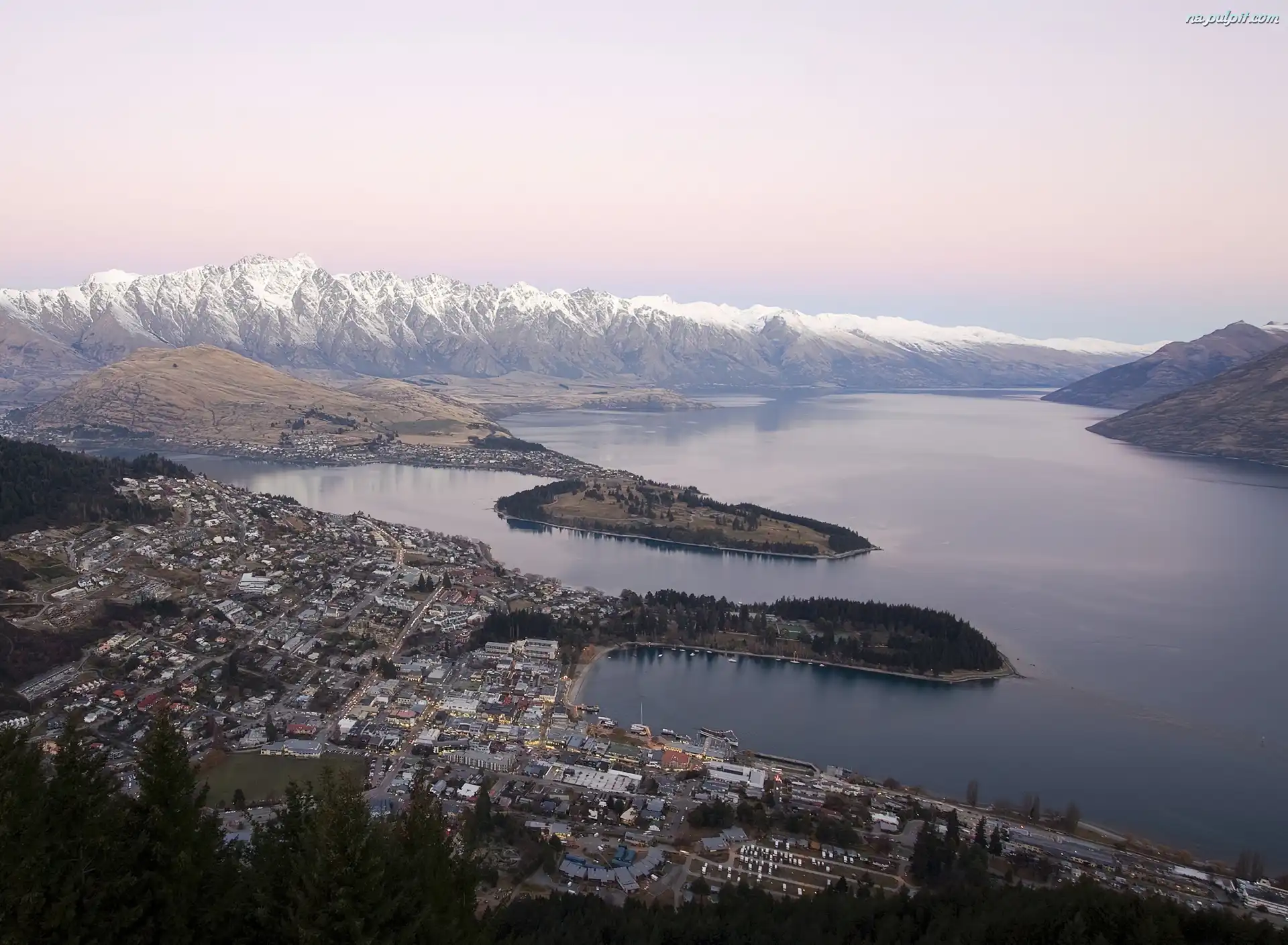 Wyspy, Jezioro, Górskie, Miasteczko Na Pulpit