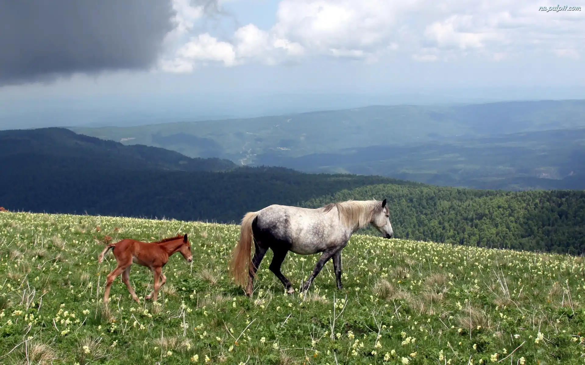 Wzgórza, Źrebak, Siwek, Koń, Łąka