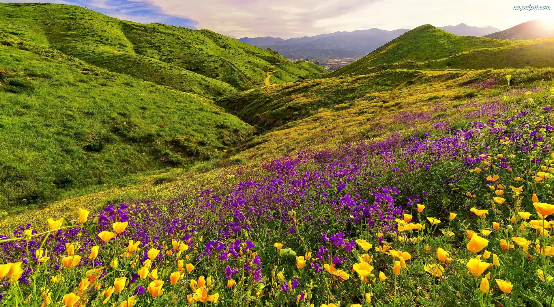 Łąka, Kwiaty, Wzgórza, Góry Na Pulpit