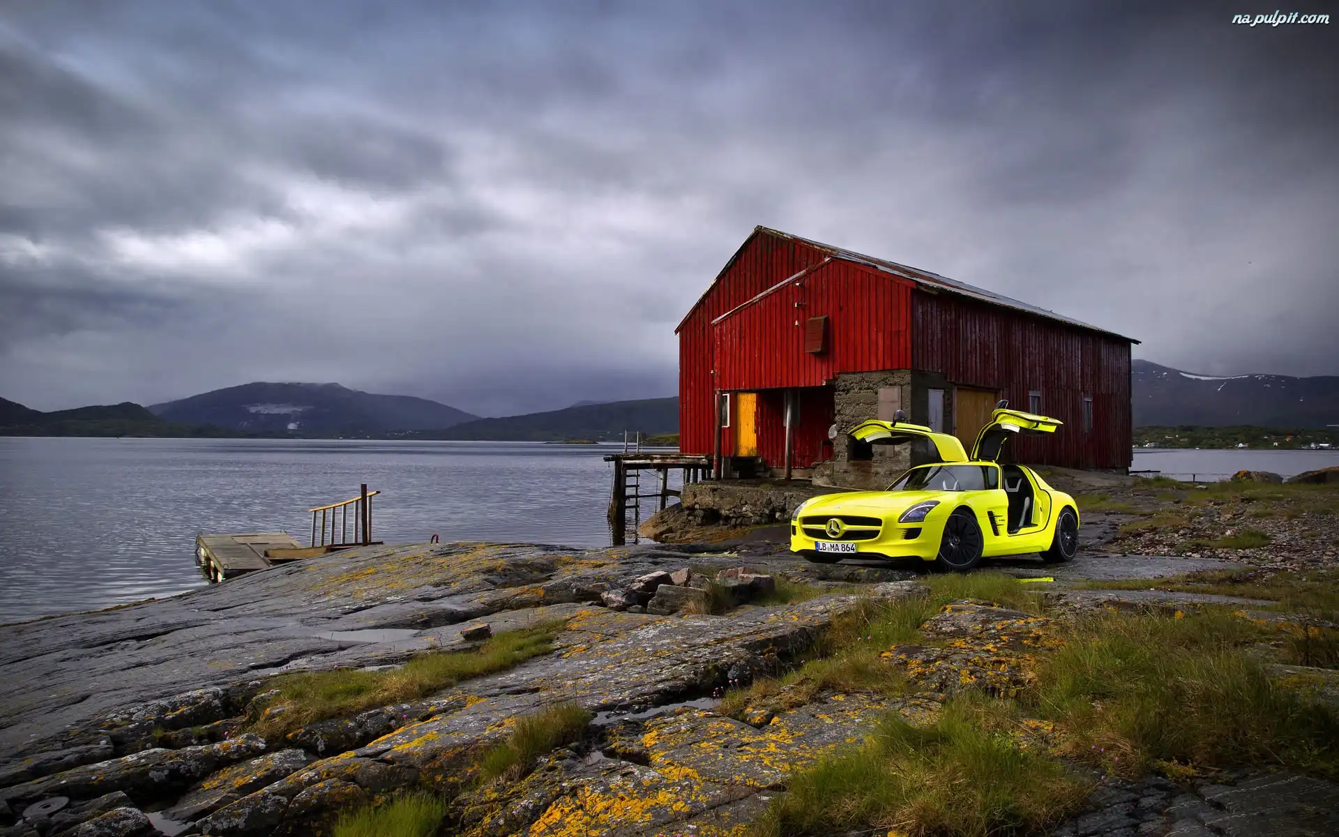 Wzgórza, Chatka, Mercedes SLS, Żółty, Kładka Na Pulpit
