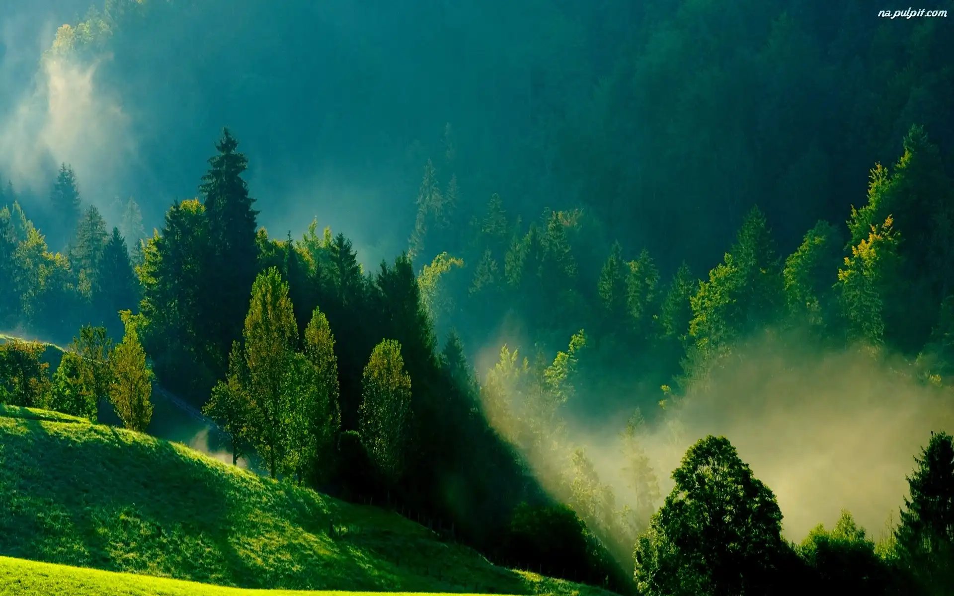 Wzgórza, Mgła, Poranna, Zielone Na Pulpit