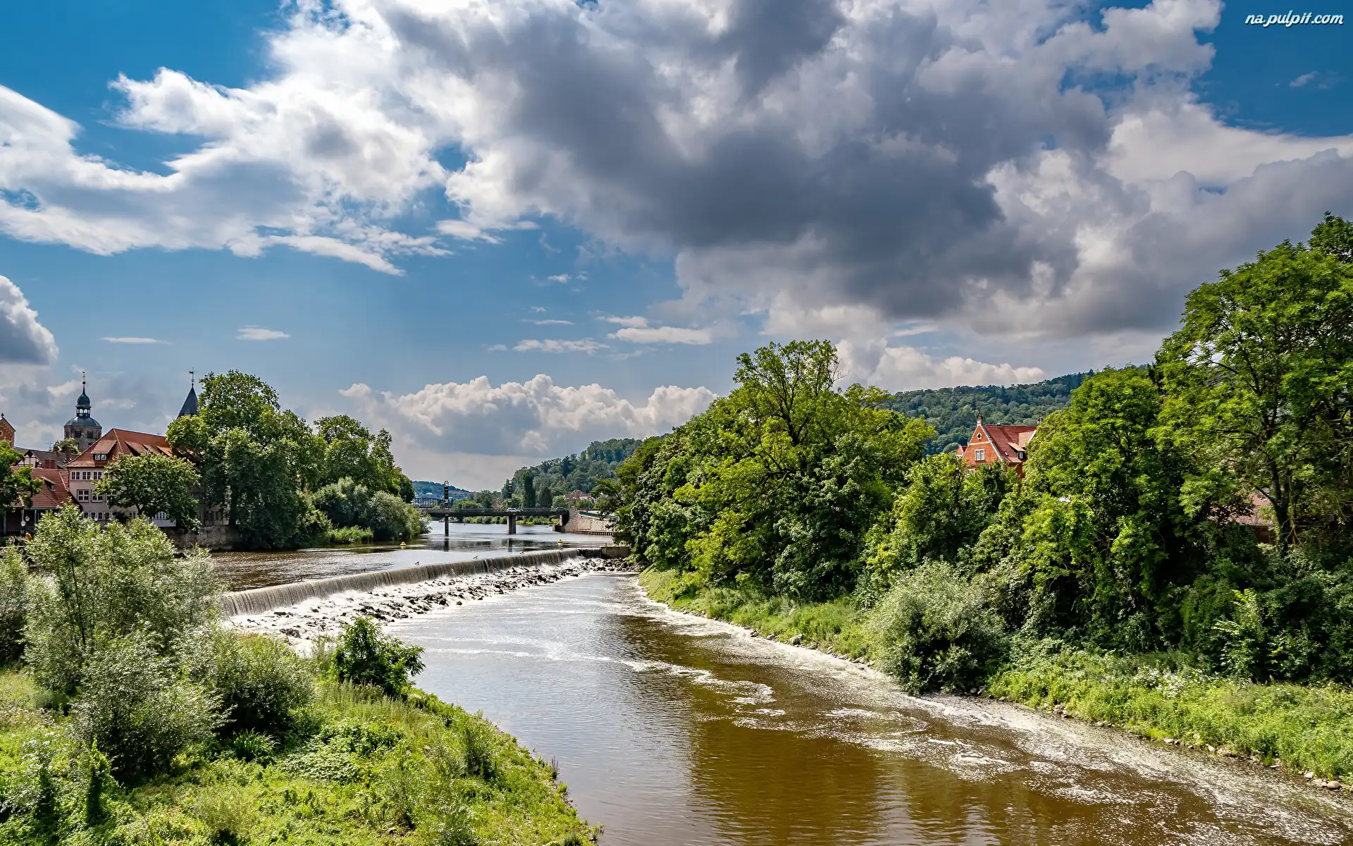 Rzeka, Most, Drzewa, Wzgórza Na Pulpit