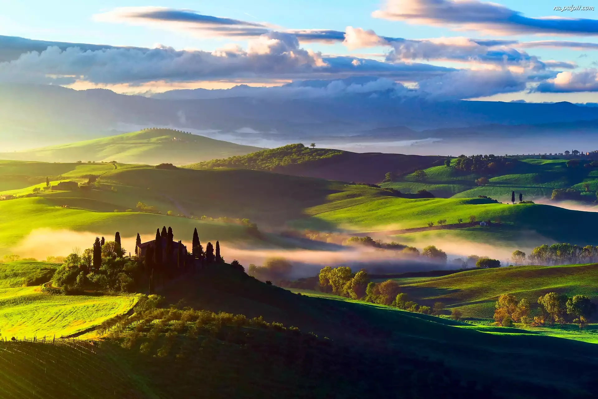 Wzgórza, Toskania, Włochy, Poranek Na Pulpit