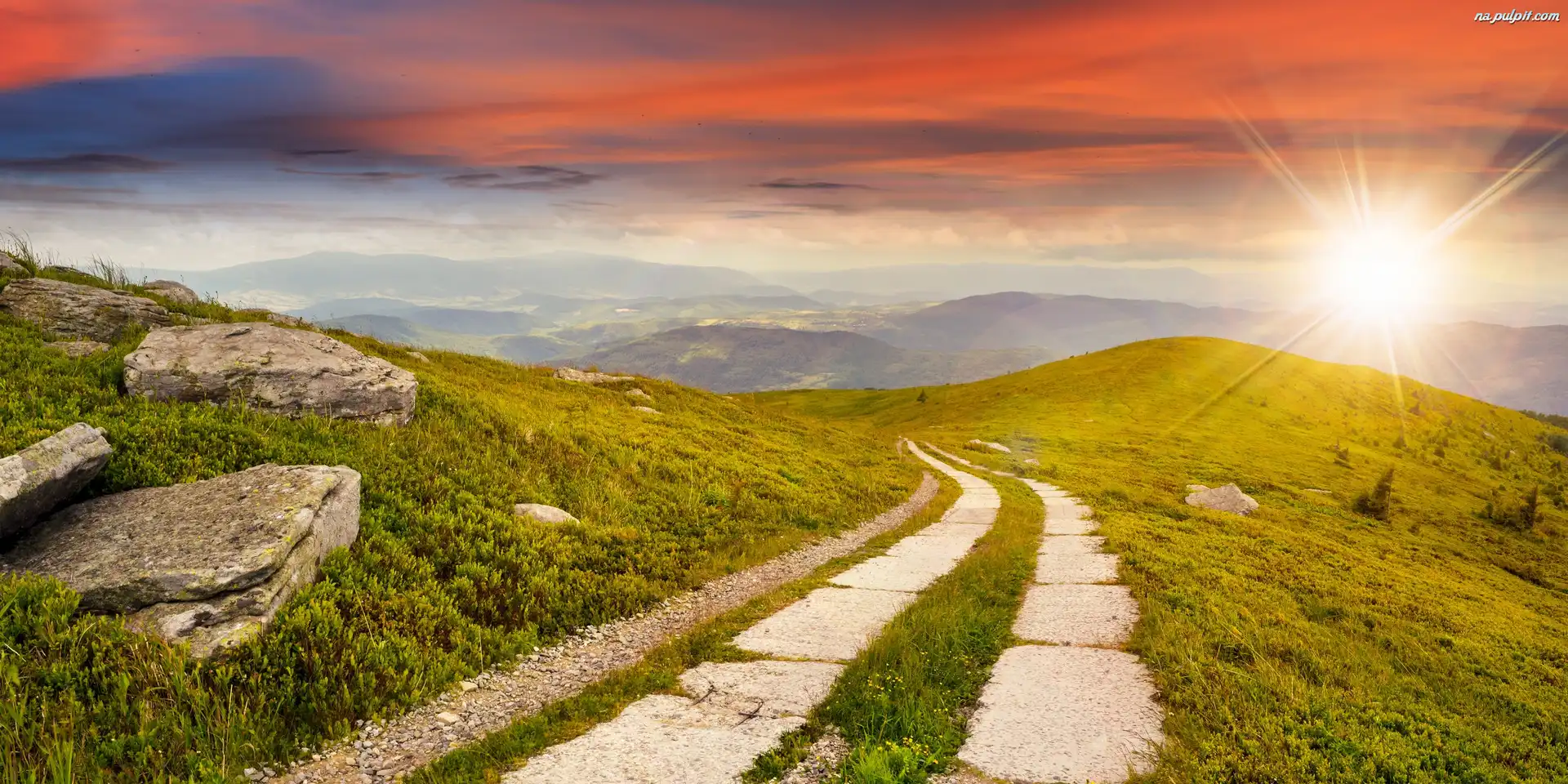 Wzgórza, Kamienie, Droga, Wschód Słońca