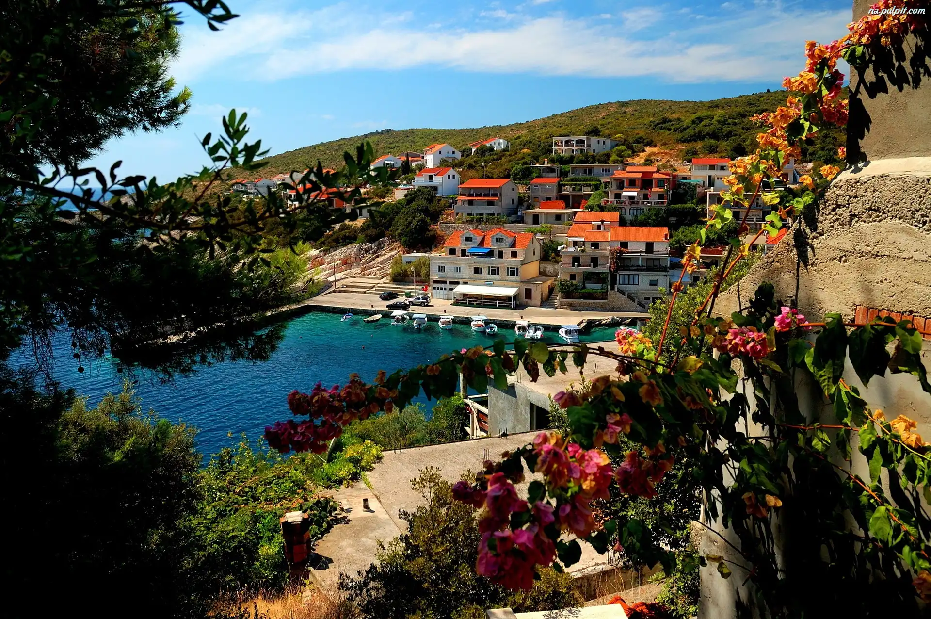 Wzgórze, Domy, Morze, Krajobraz, Miasteczko Na Pulpit