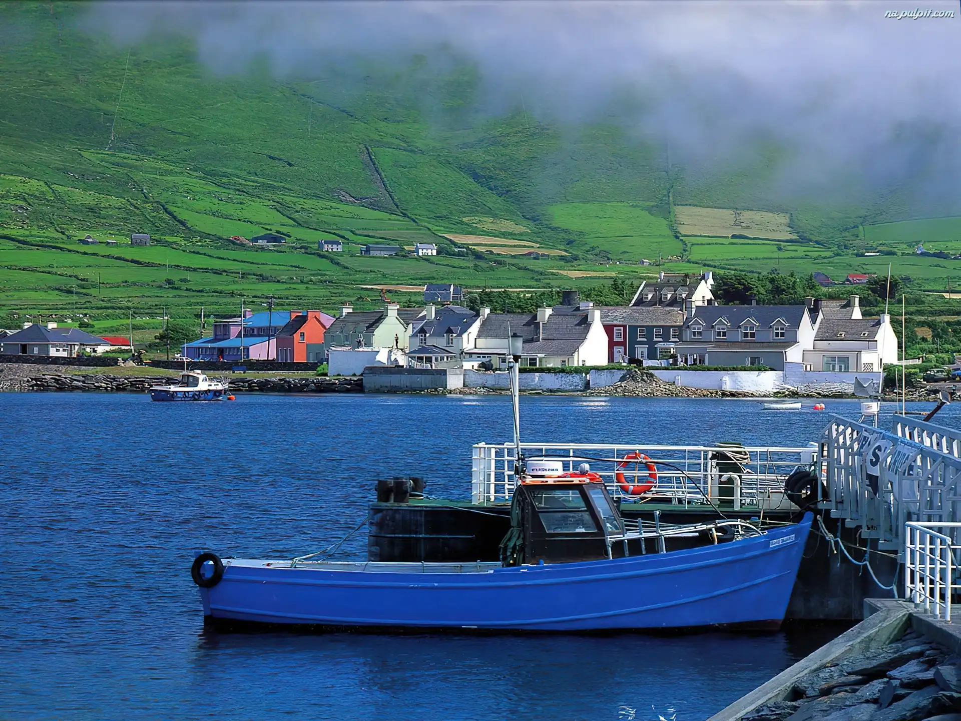 Wzgórze, Domy, Kuter, Zielone Na Pulpit