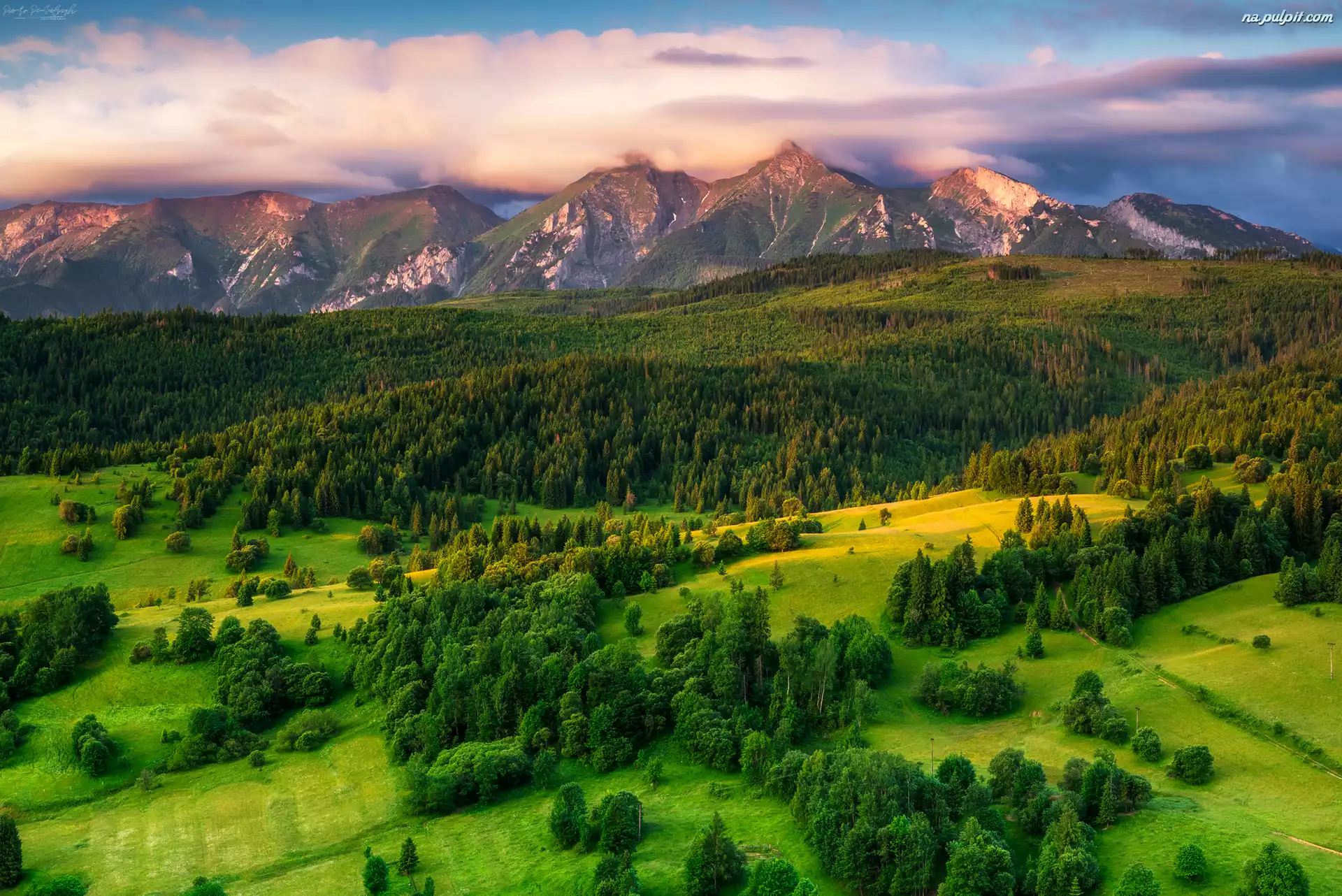Lasy, Tatry, Łąki, Słowacja, Poranek, Chmury, Góry, Wzgórze Na Pulpit