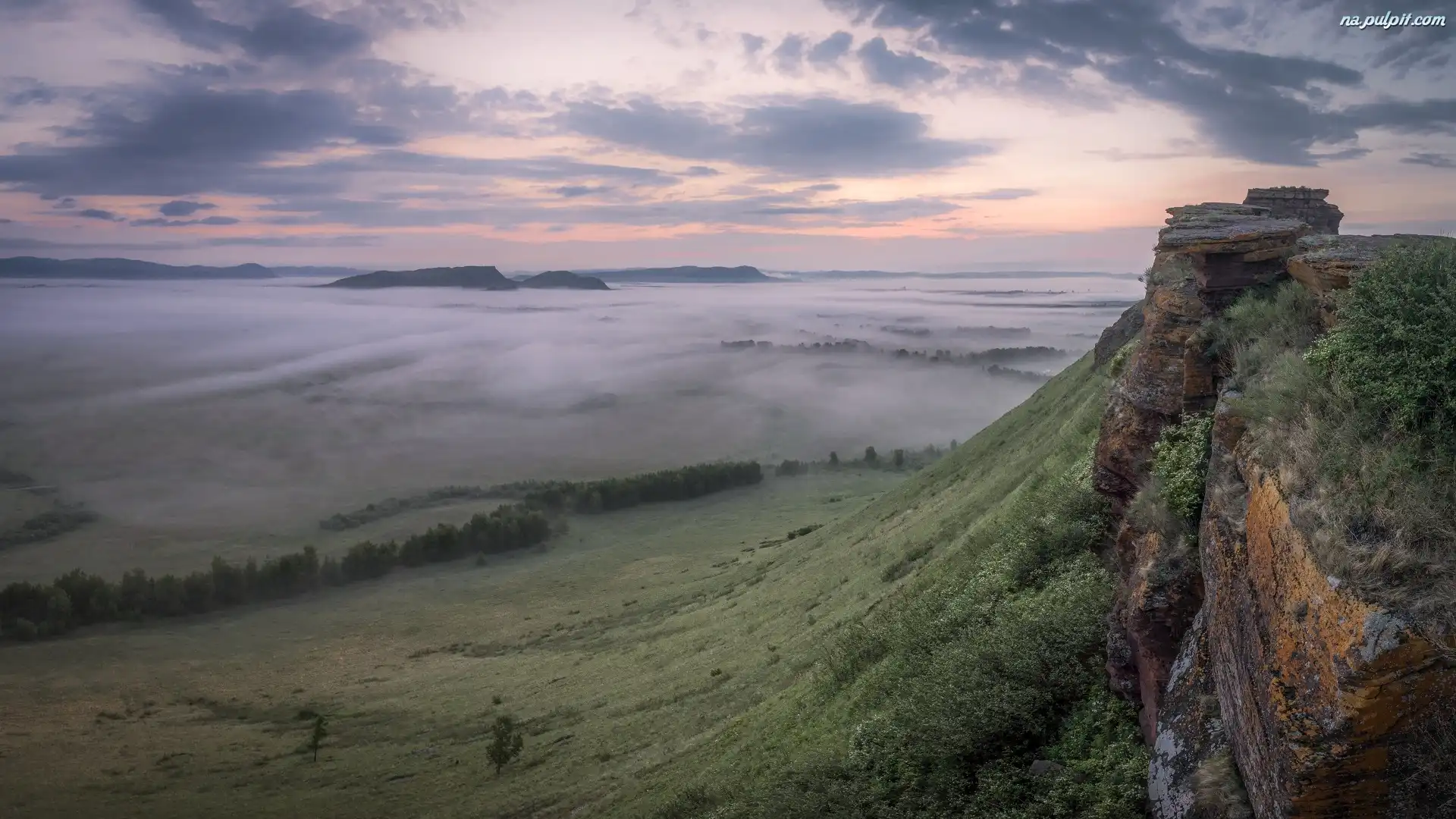 Sunduki, Wzgórze, Skały, Chakasja, Rosja, Dolina, Poranek, Mgła Na Pulpit