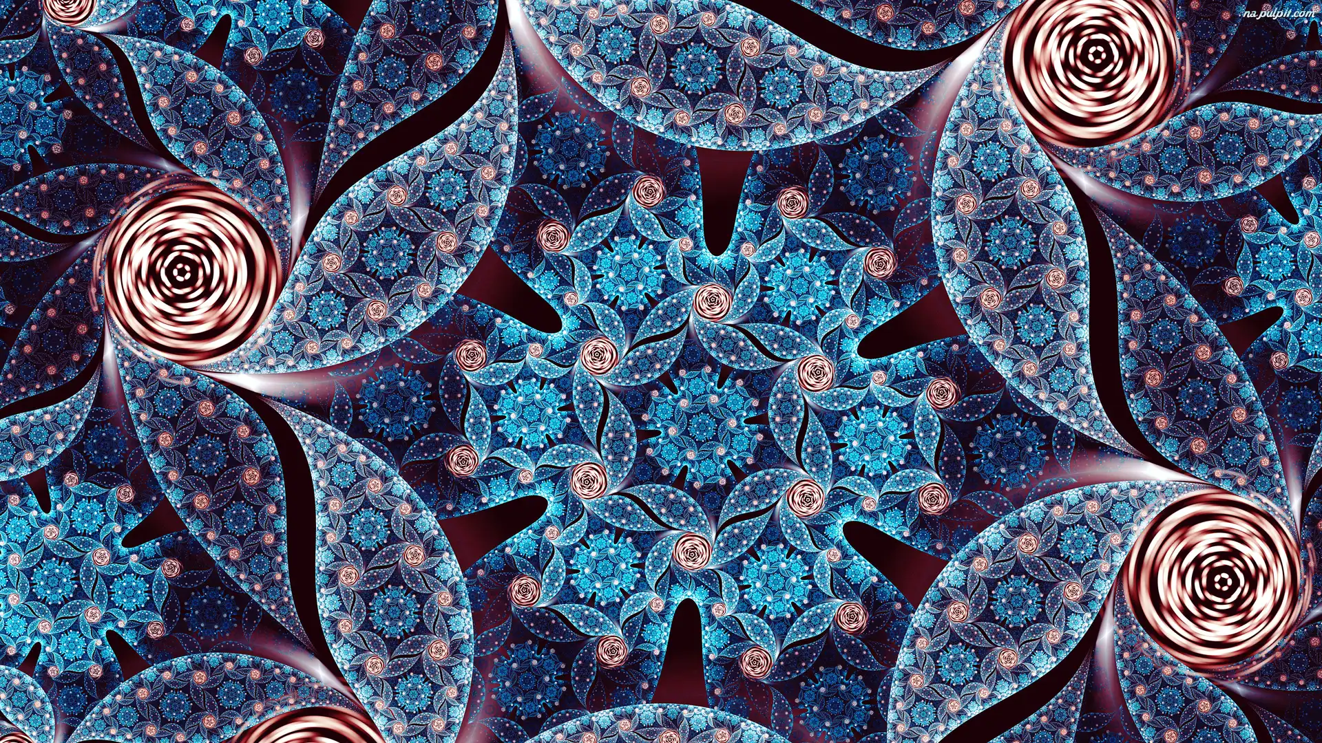 Wzory, Róże, Liście, Niebieskie, Fraktal, Kwiaty Na Pulpit