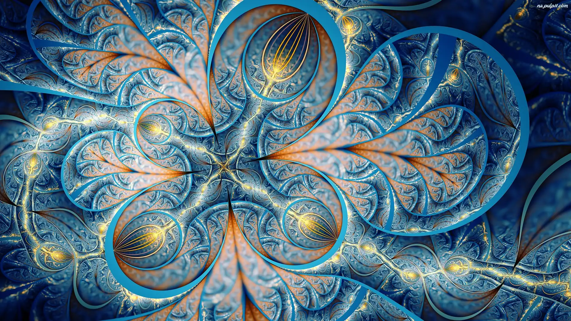 Wzory, Fraktal, Niebiesko-złote Na Pulpit