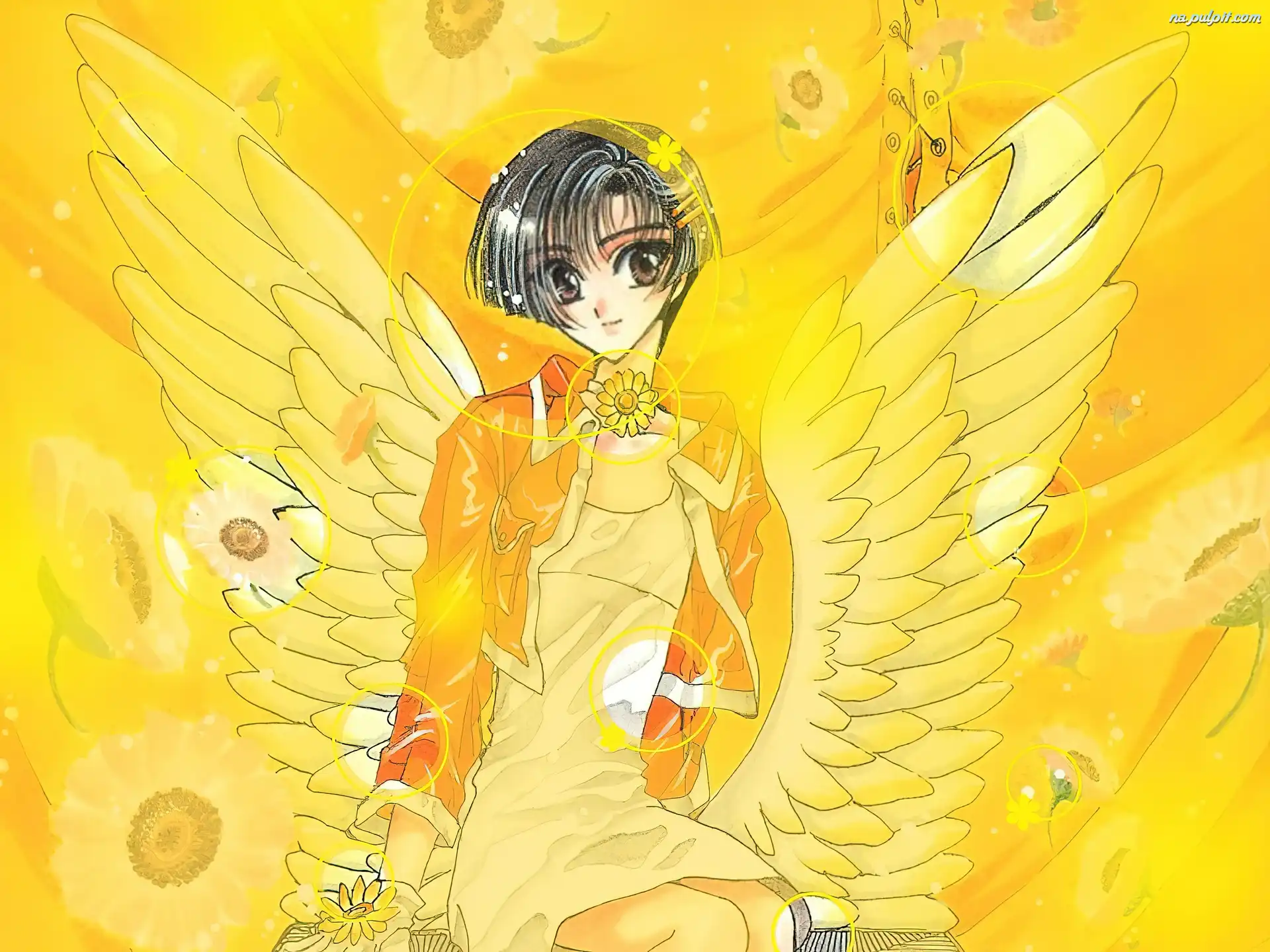 X, postać, skrzydła, kwiaty Na Pulpit