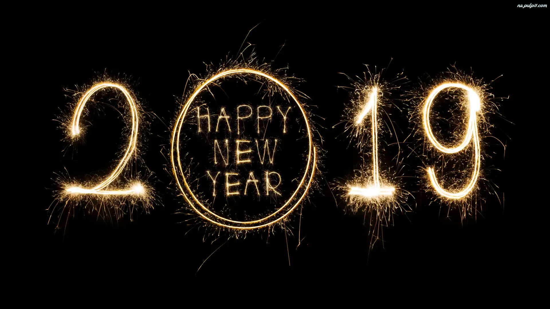 Czarne tło, Napis, 2019, Nowy Rok, Happy New Year Na Pulpit