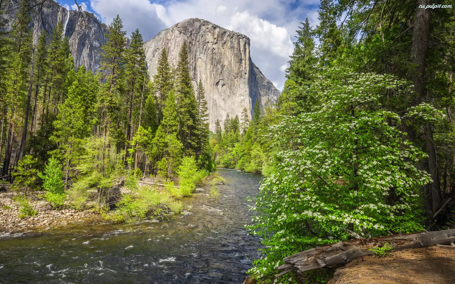 Drzewa, Krzewy, Kalifornia, Góra, El Capitan, Park Narodowy Yosemite, Stany Zjednoczone, Merced River, Rzeka Na Pulpit |
