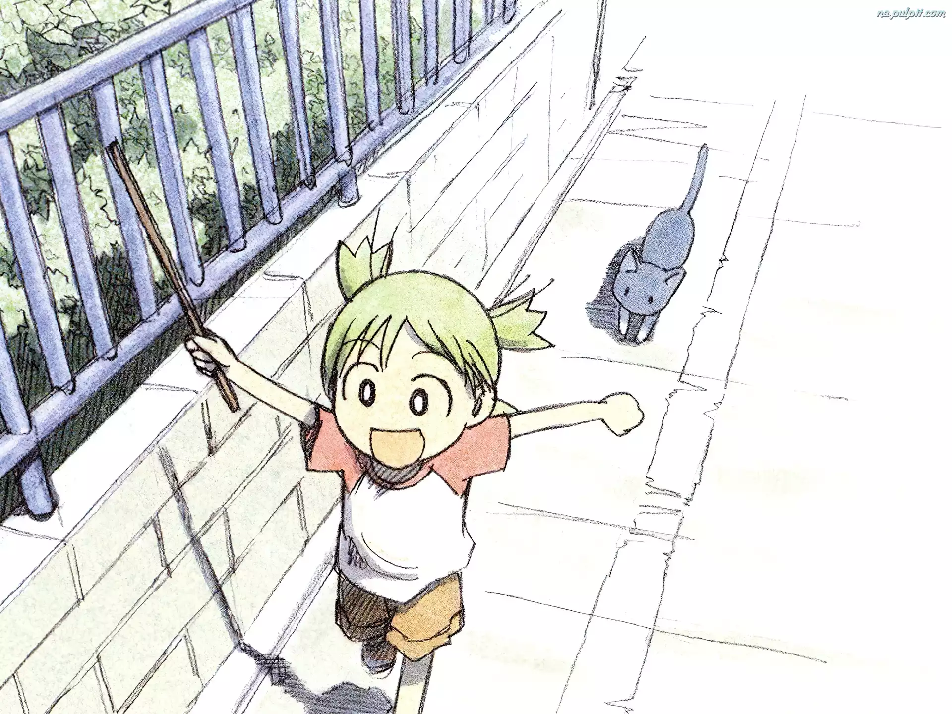 Yotsubato, dziecko, płot, kot Na Pulpit