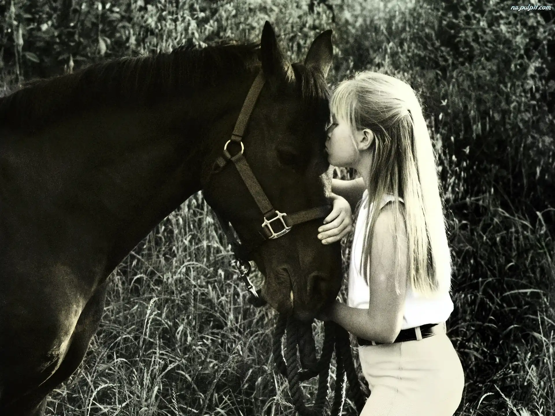 Z, Koń, Fotografia, Długimi, Dziewczynka, Włosami Na Pulpit