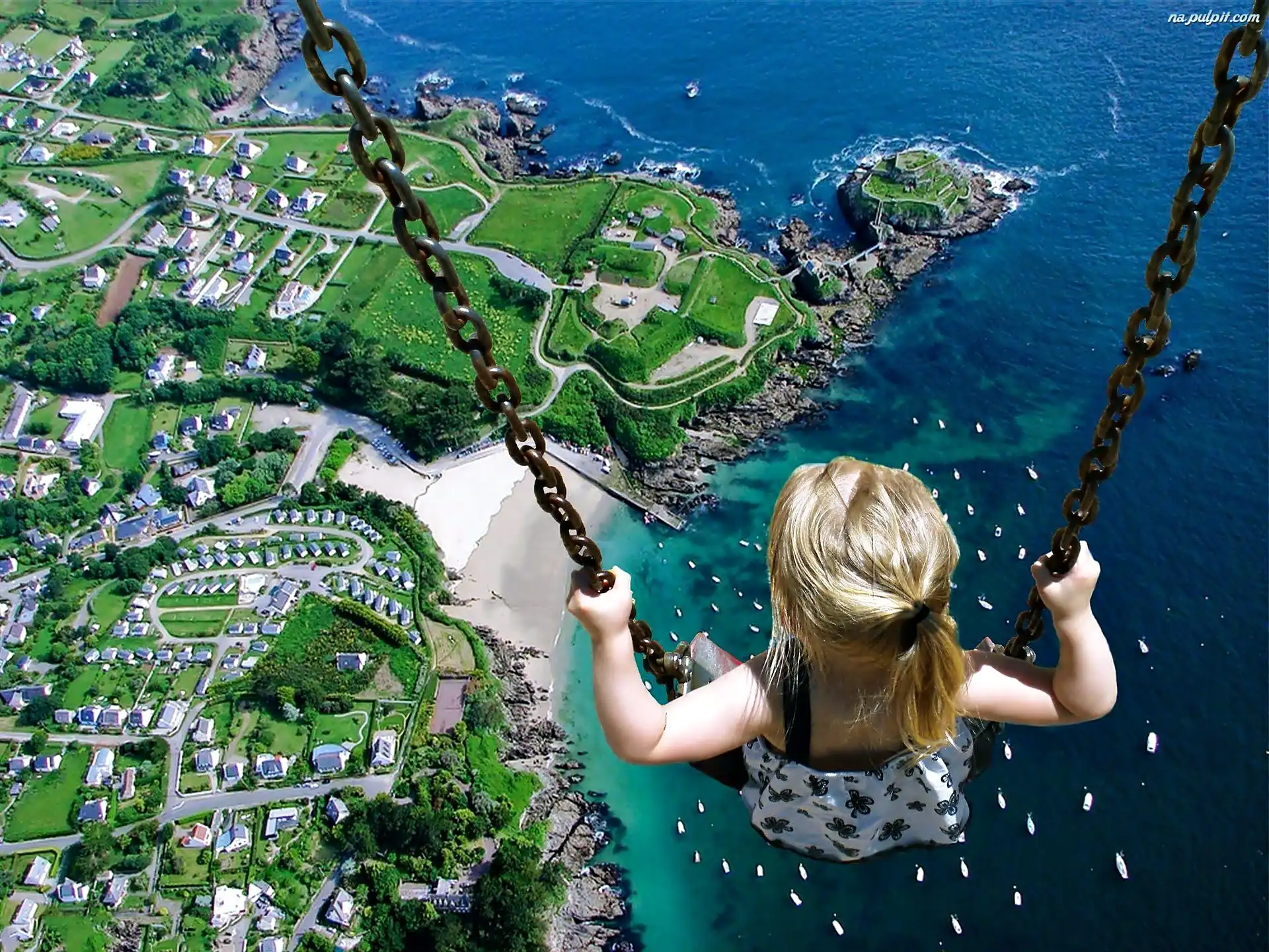 Huśtawka, Z lotu ptaka, Półwysep, Krajobraz, Dziecko Na Pulpit