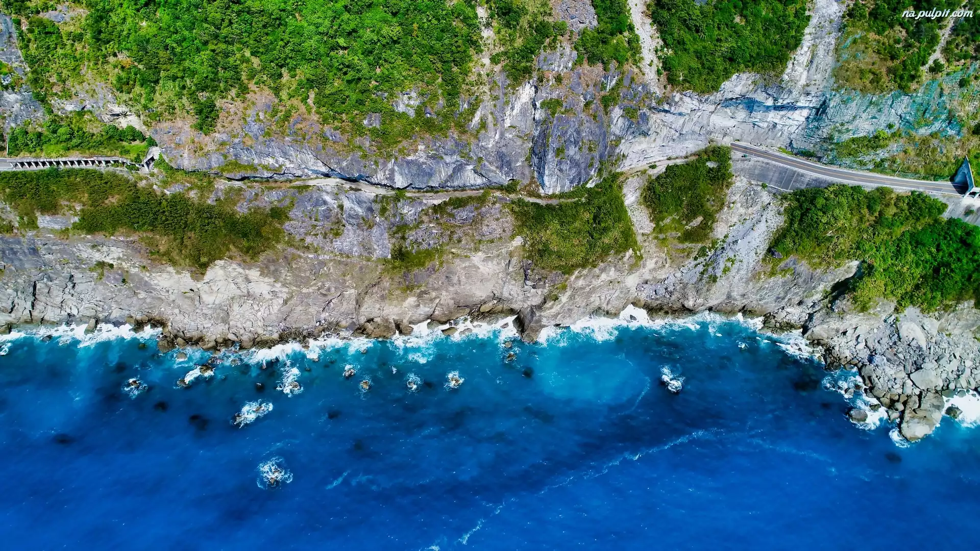 Morze, Wybrzeże, Skały, Z lotu ptaka Na Pulpit