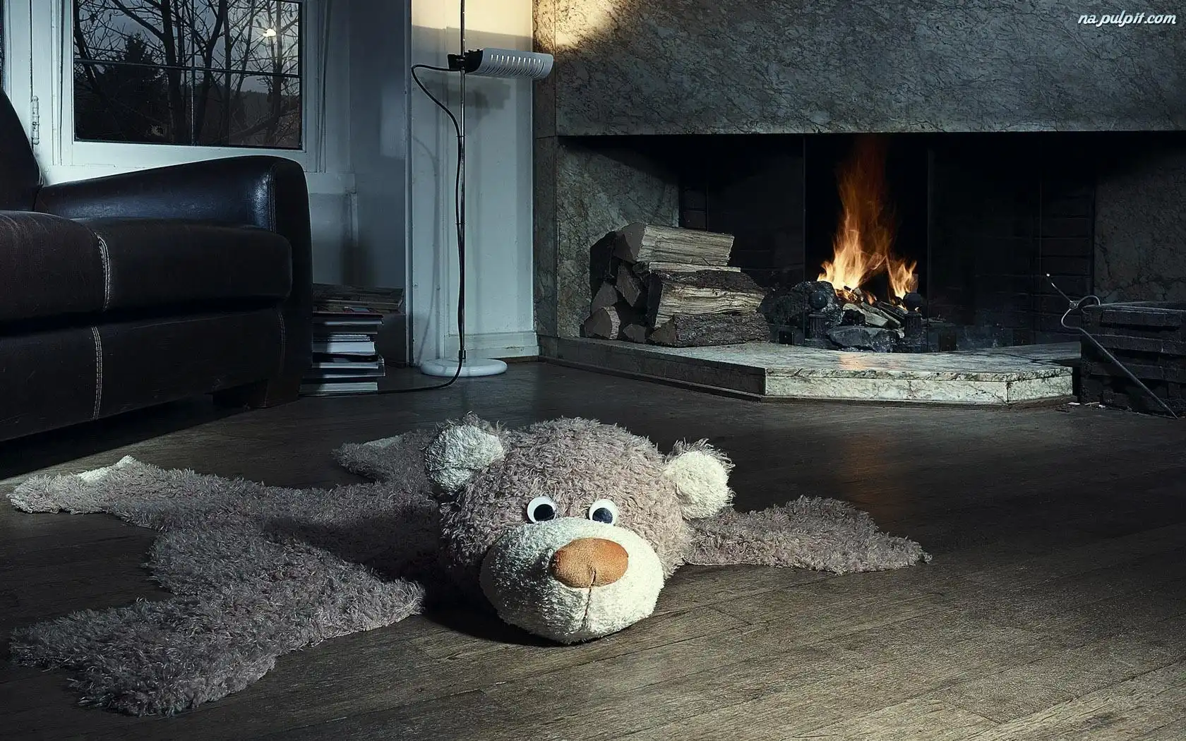 Z, Dywan, Kominek, Różowego, Skórka, Misia Na Pulpit
