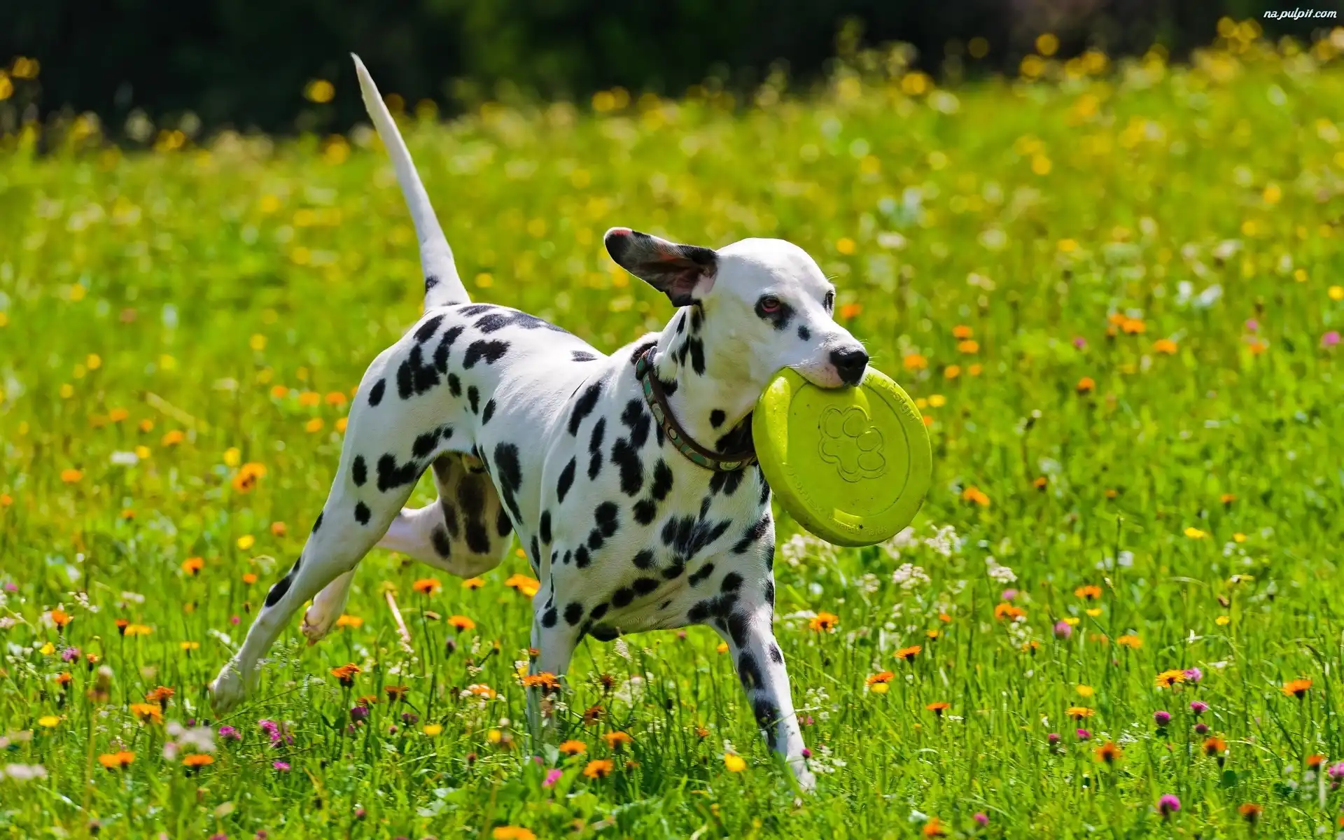 Zabawa, Pies, Łąka, Dalmatyńczyk
