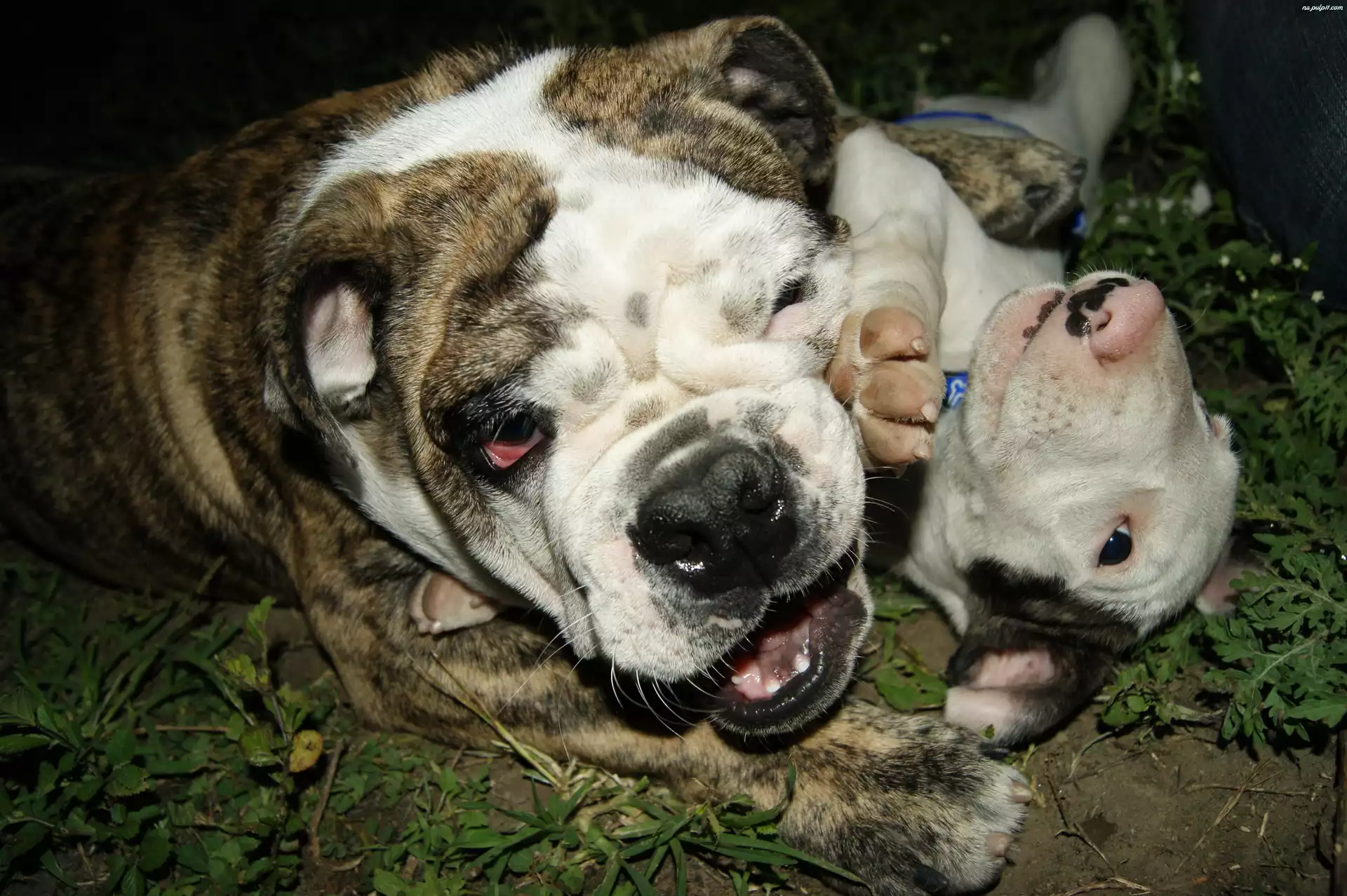 Zabawa, Buldog Angielski, Trawa Na Pulpit