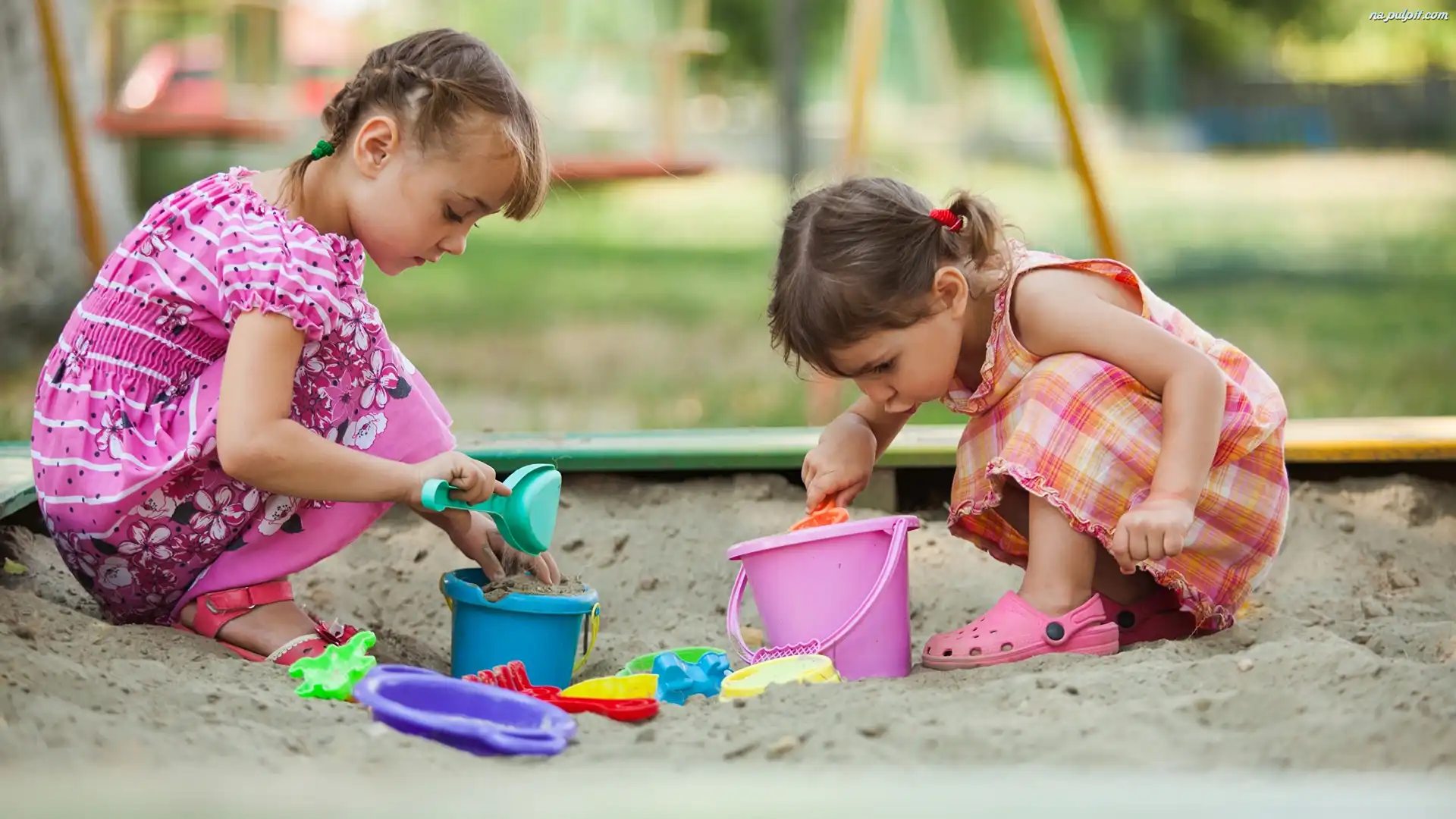 Zabawa, Piaskownica, Dziewczynki, Zabawki Na Pulpit
