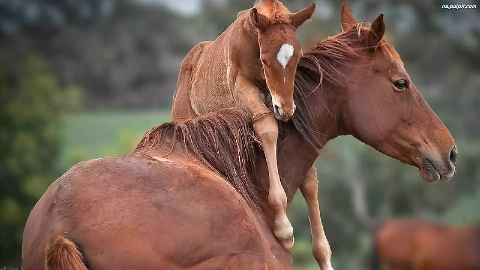 Zabawa, Mama, Koń, Źrebak Na Pulpit