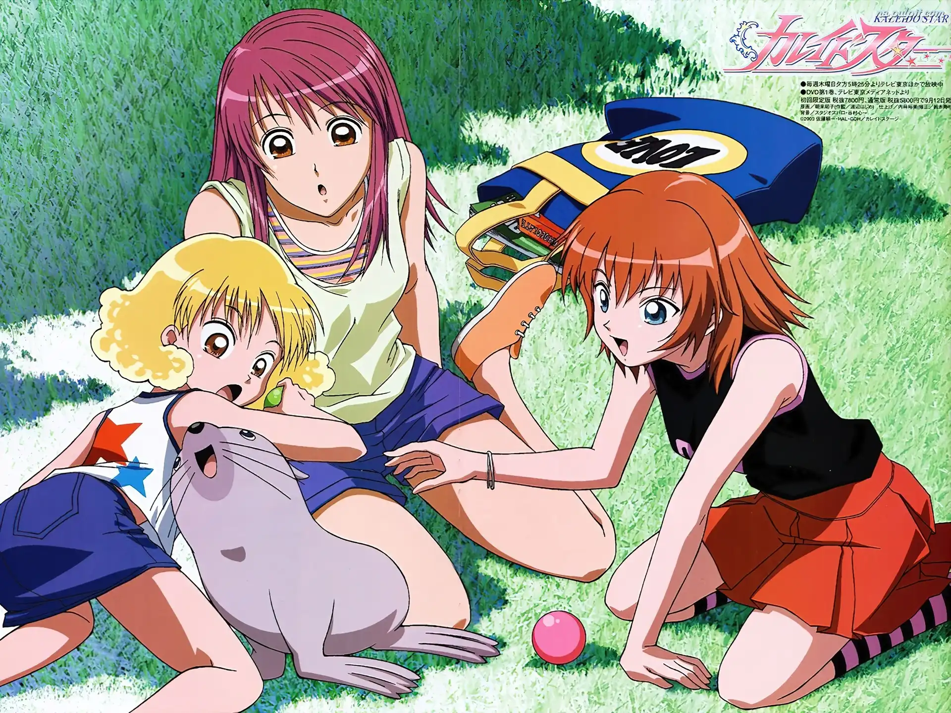 zabawa, foka, dzieci, Kaleido Star, trawa