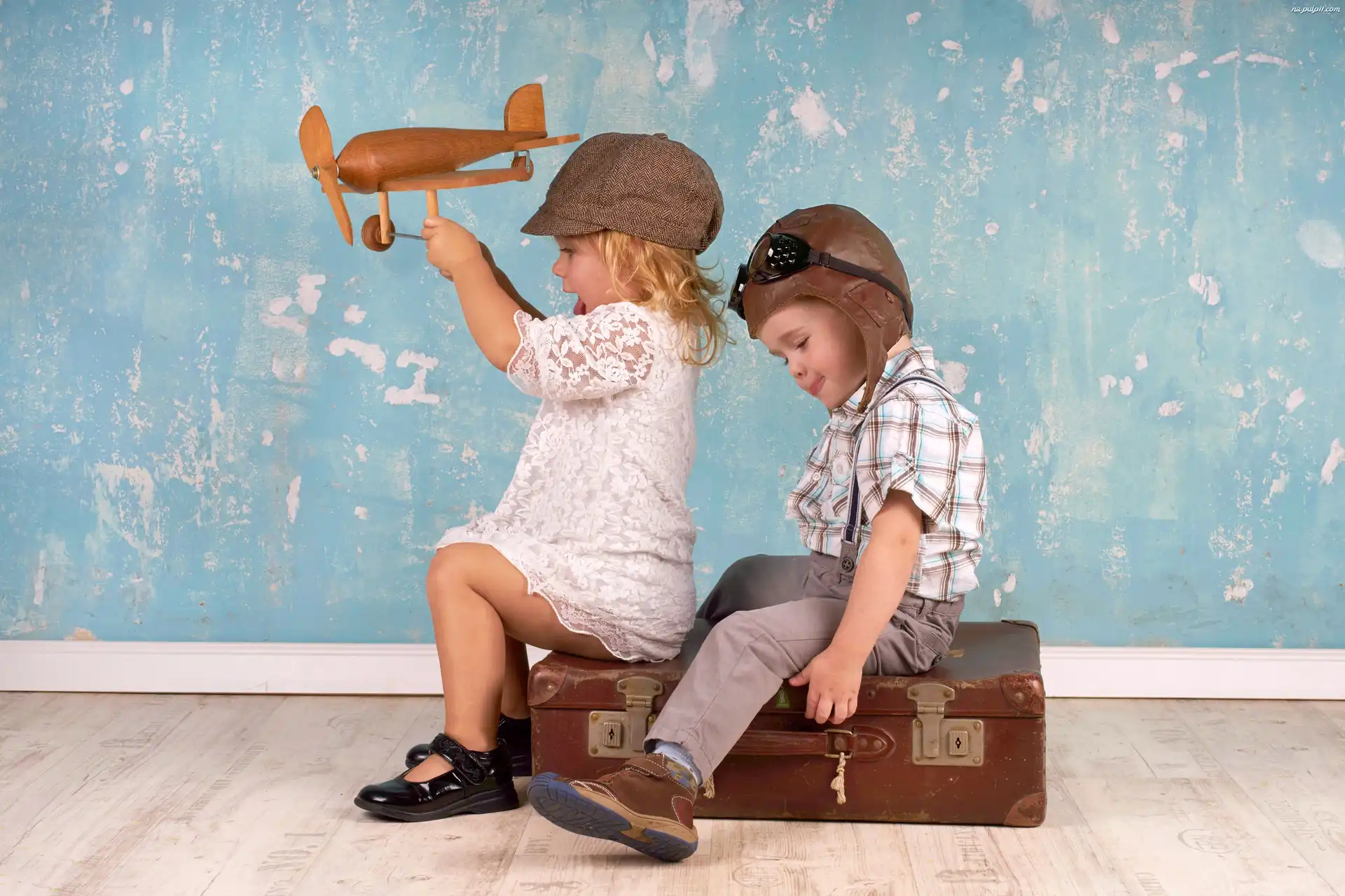 Zabawka, Drewniany, Walizka, Dzieci, Samolot