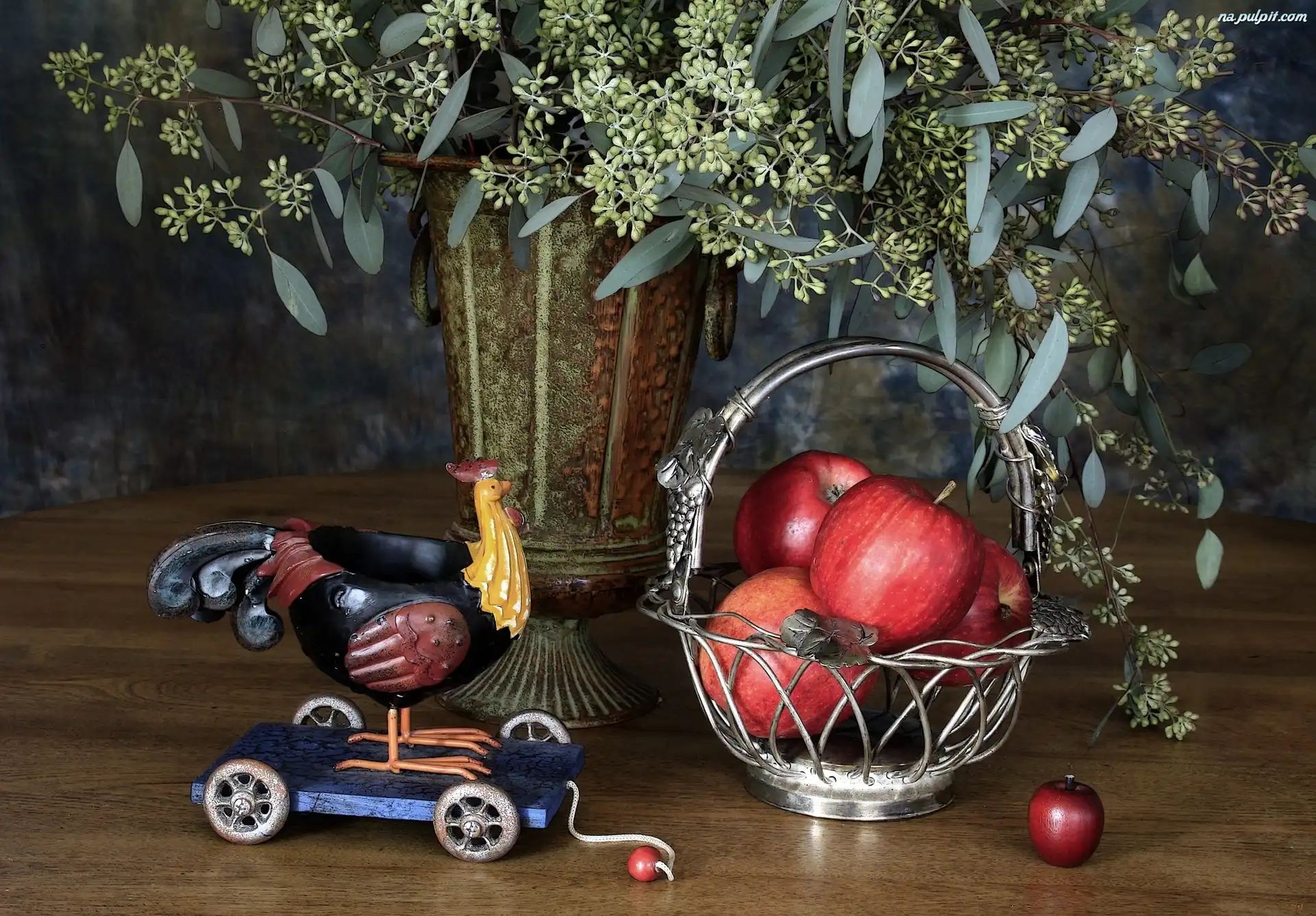 Zabawka, Kwiaty, Natura, Martwa, Jabłka Na Pulpit