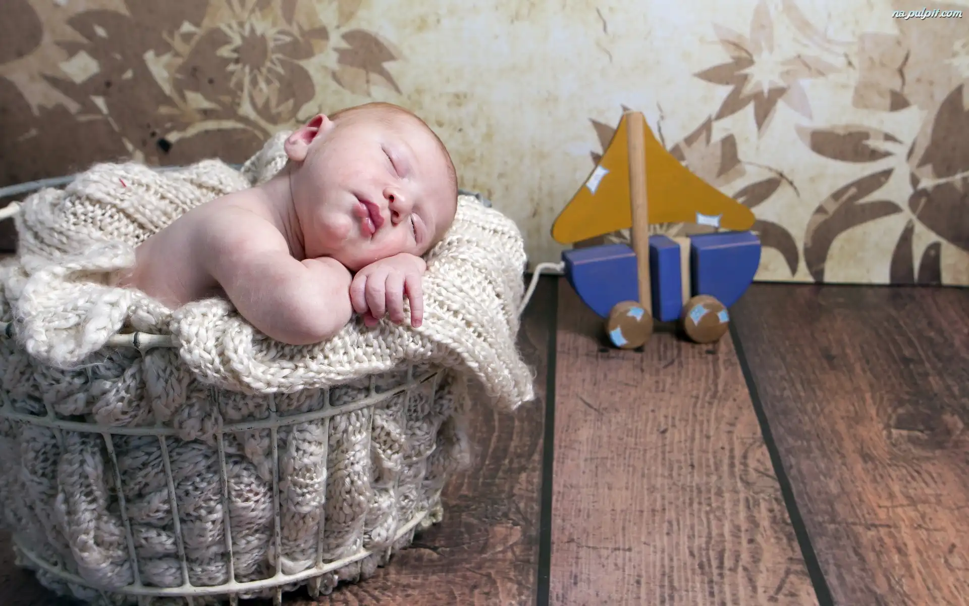 Zabawka, Dziecko, Drewniana, Dzianinowy, Kosz, ÅšpiÄ…ce, Kocyk