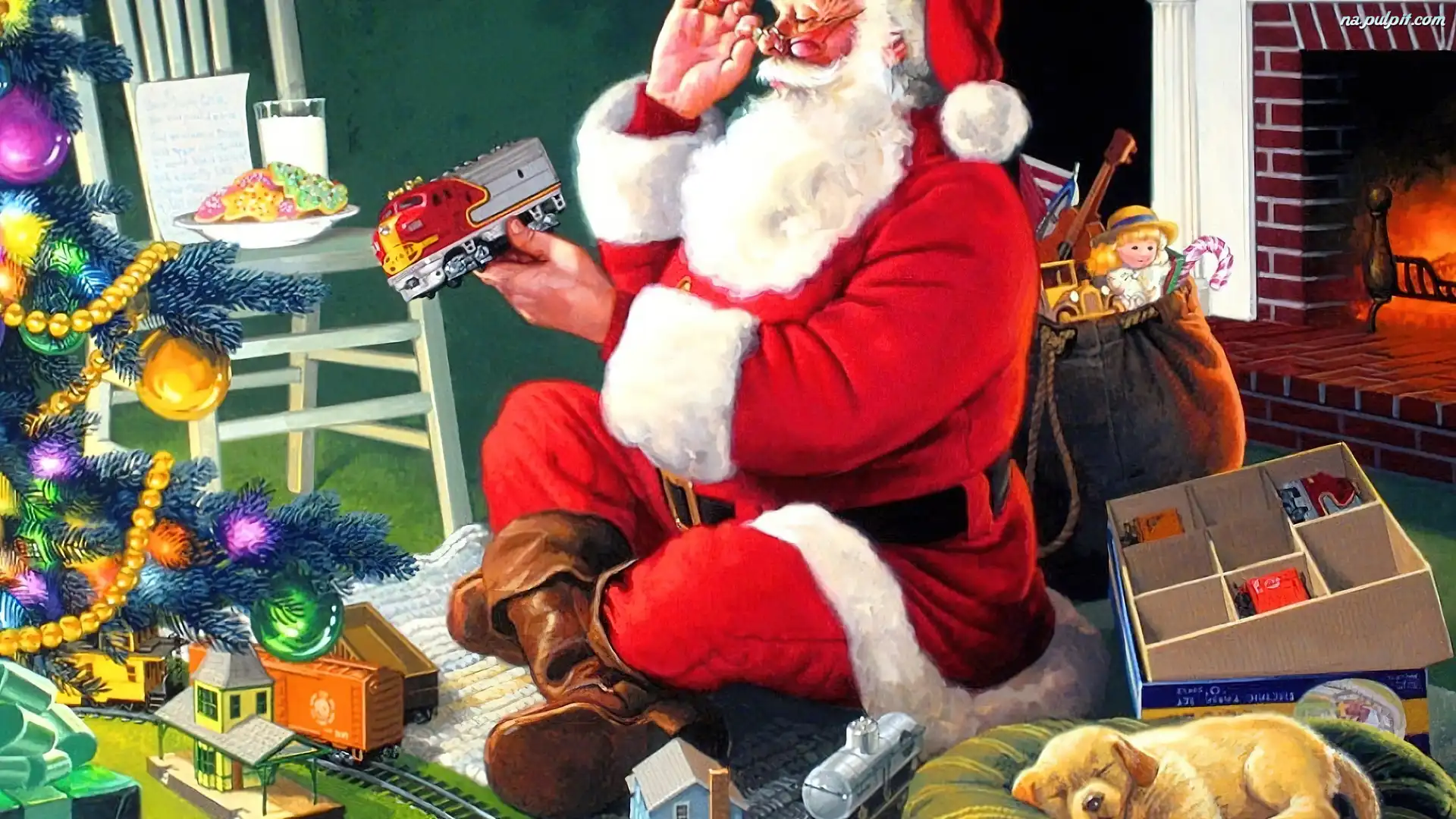 Choinka, Zabawki, Mikołaj Na Pulpit