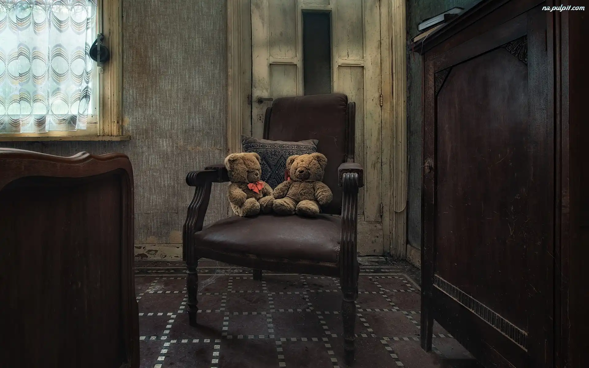 Zabawki, Fotel, Wnętrze, Pokój, Misie