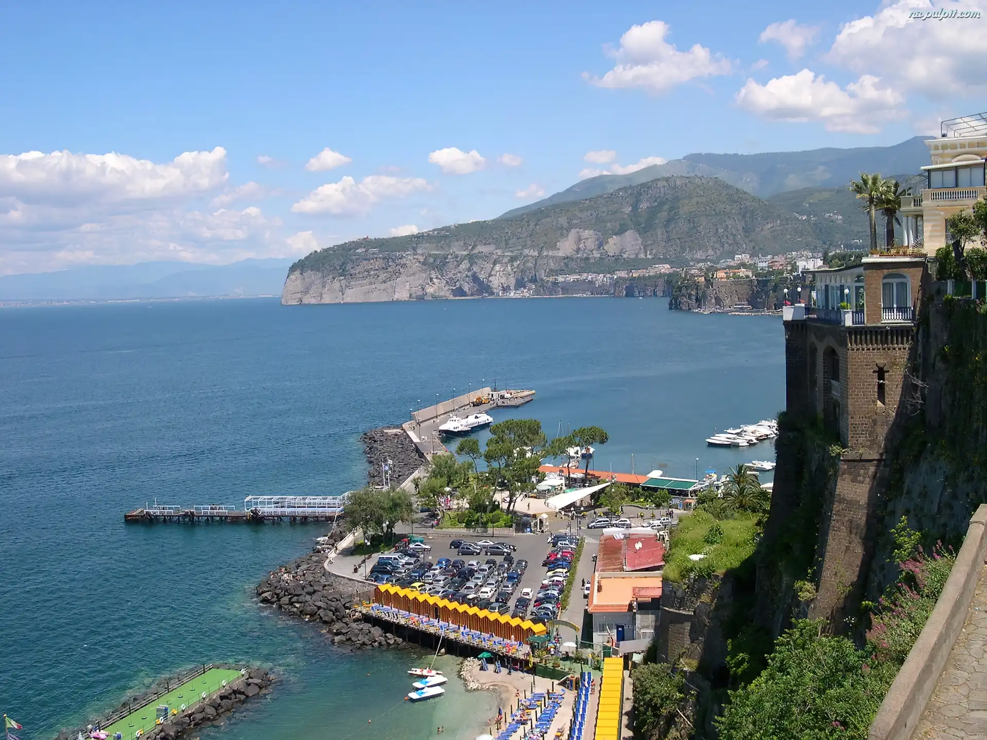 Zabudowa, Woda, Włochy, Sorrento, Góry